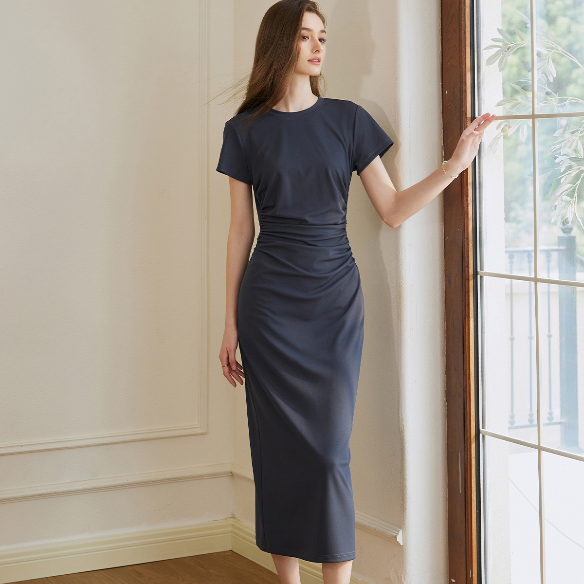 罗衣法式针织包臀连衣裙2025夏季新款简约修身显瘦掐腰长裙10477