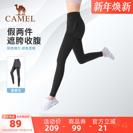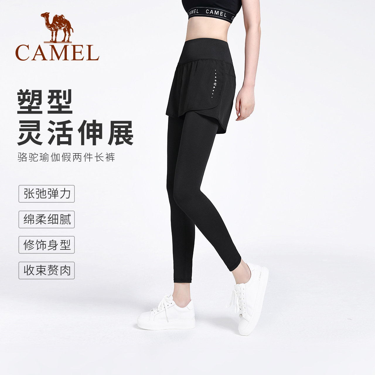 骆驼瑜伽裤女款秋冬假两件弹力健身紧身运动裤百搭透气休闲长裤子