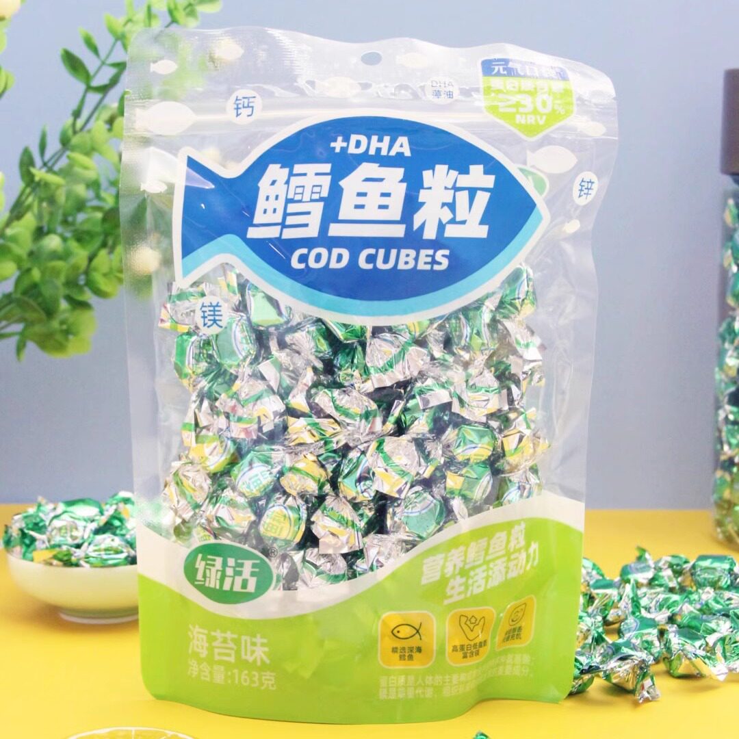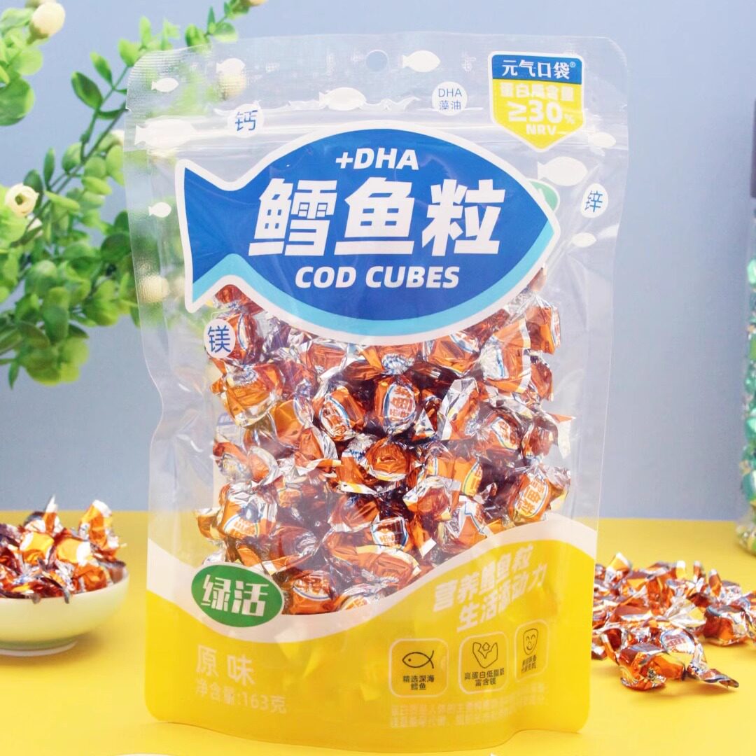 鳕鱼粒163g袋装香辣什锦海苔味原味小吃休闲零食DHA藻油即食干货