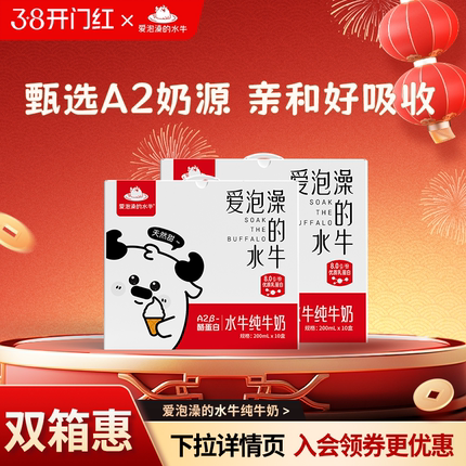 爱泡澡的水牛纯牛奶A2β-酪蛋白200ml*10盒*2箱广西水牛纯牛奶