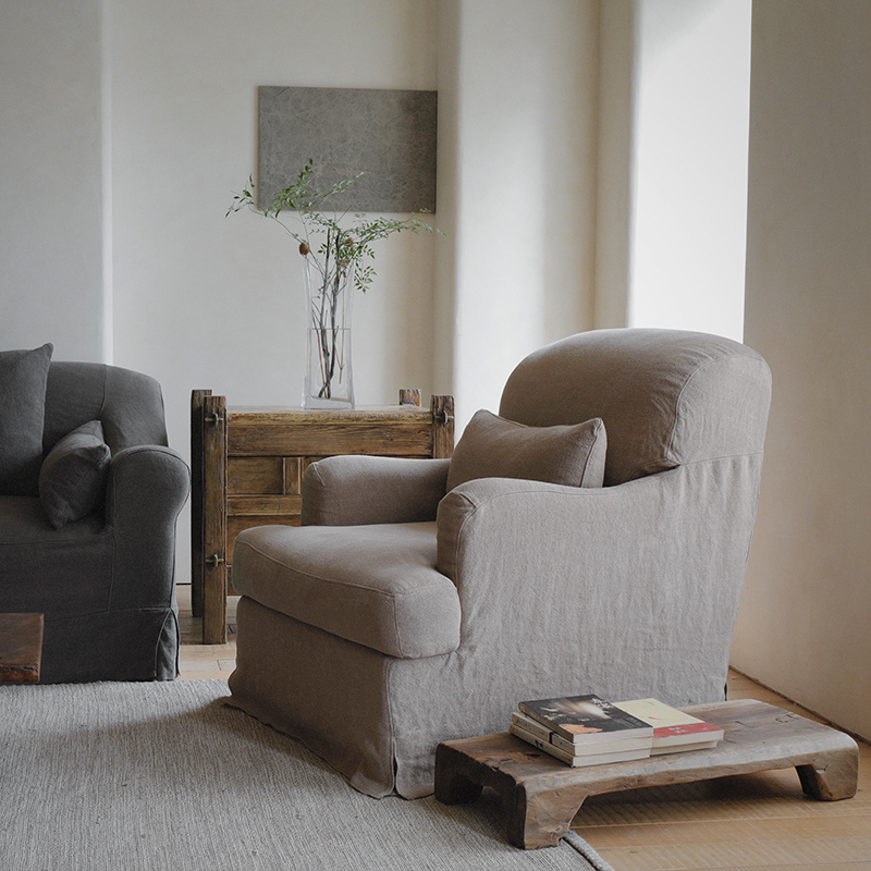 叕木|大头沙发\单人沙发日式侘寂风格亚麻布艺可拆洗北欧民宿沙发