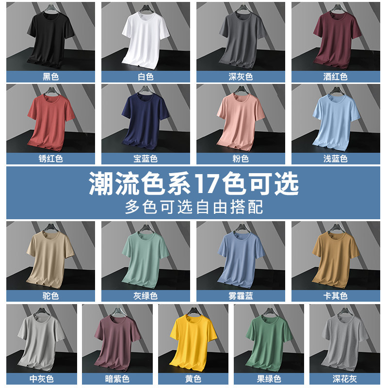 莫代尔短袖t恤男夏季冰丝凉感圆领上衣服纯色半袖打底衫速干体恤