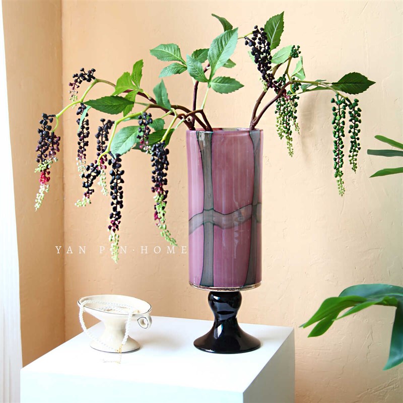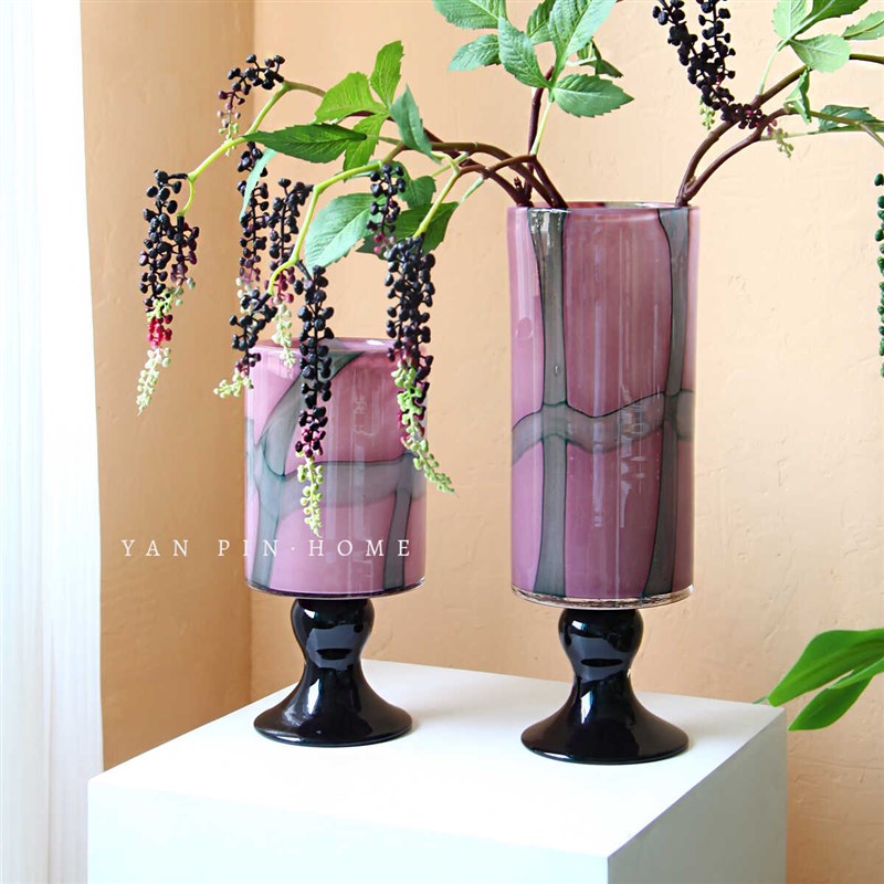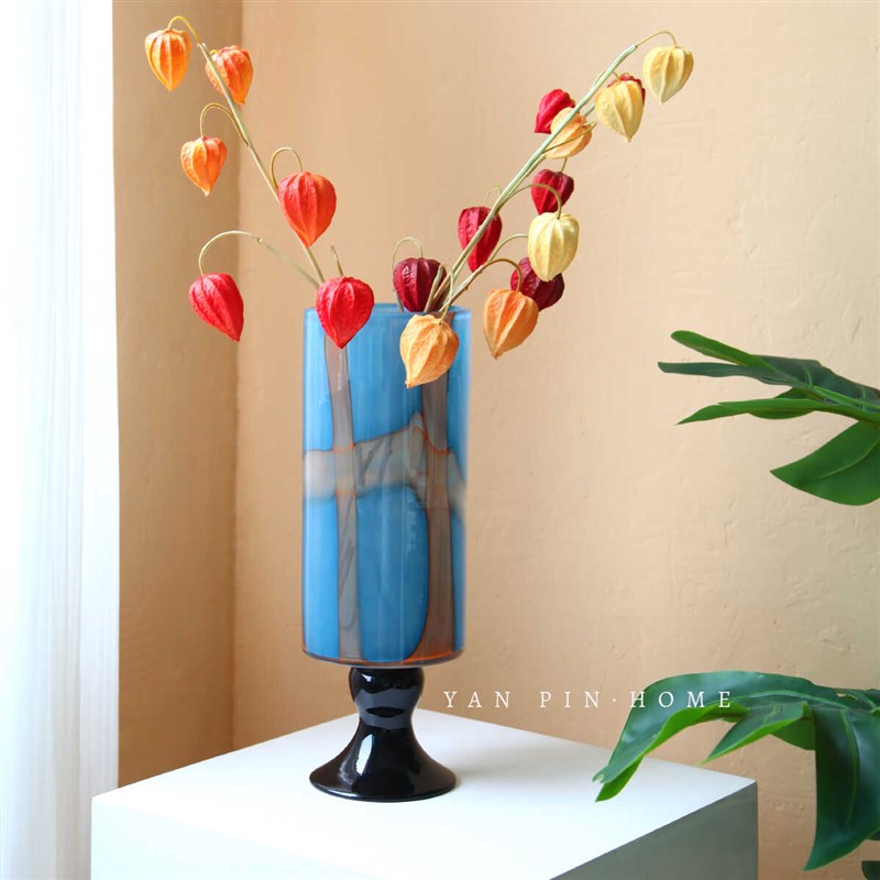 中古琉璃花瓶彩色客厅玄关高脚玻璃花器新中式高级感艺术装饰摆件