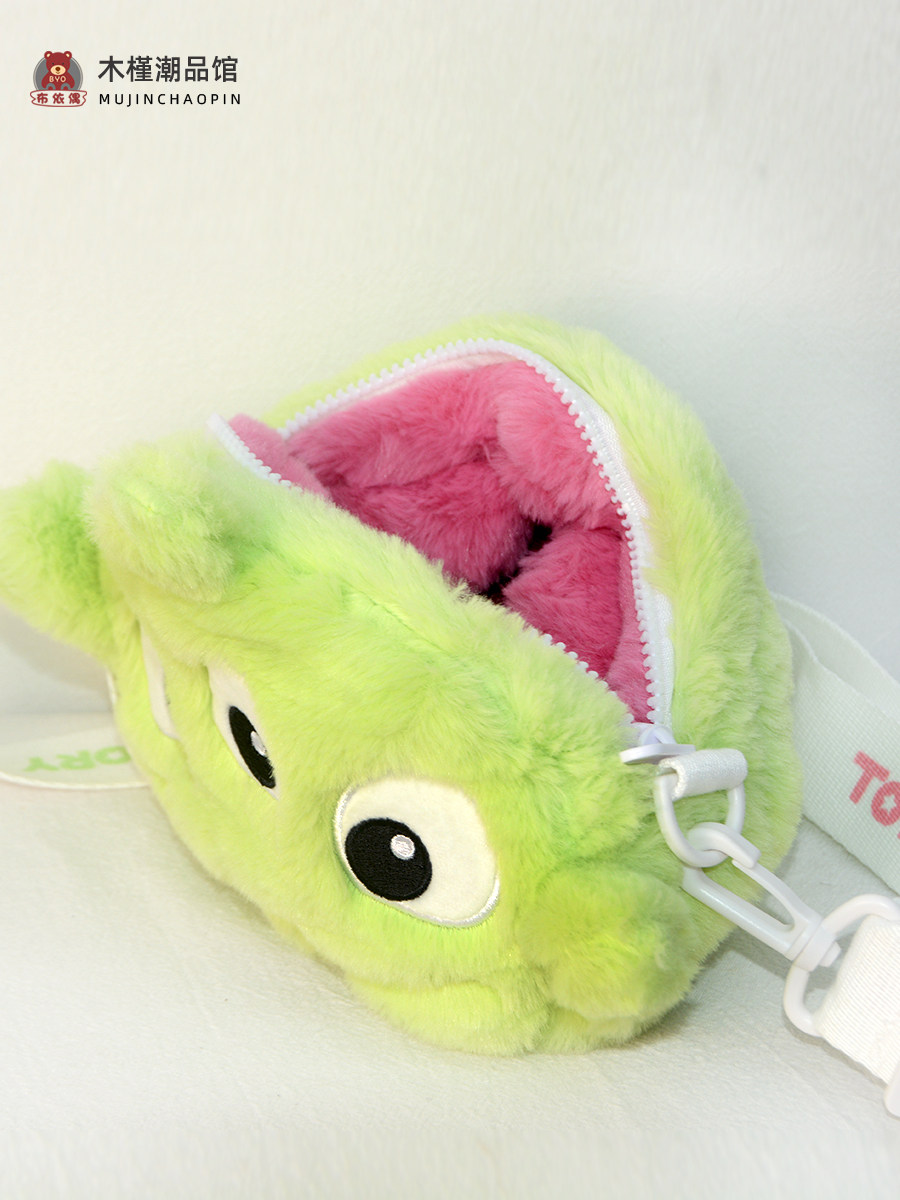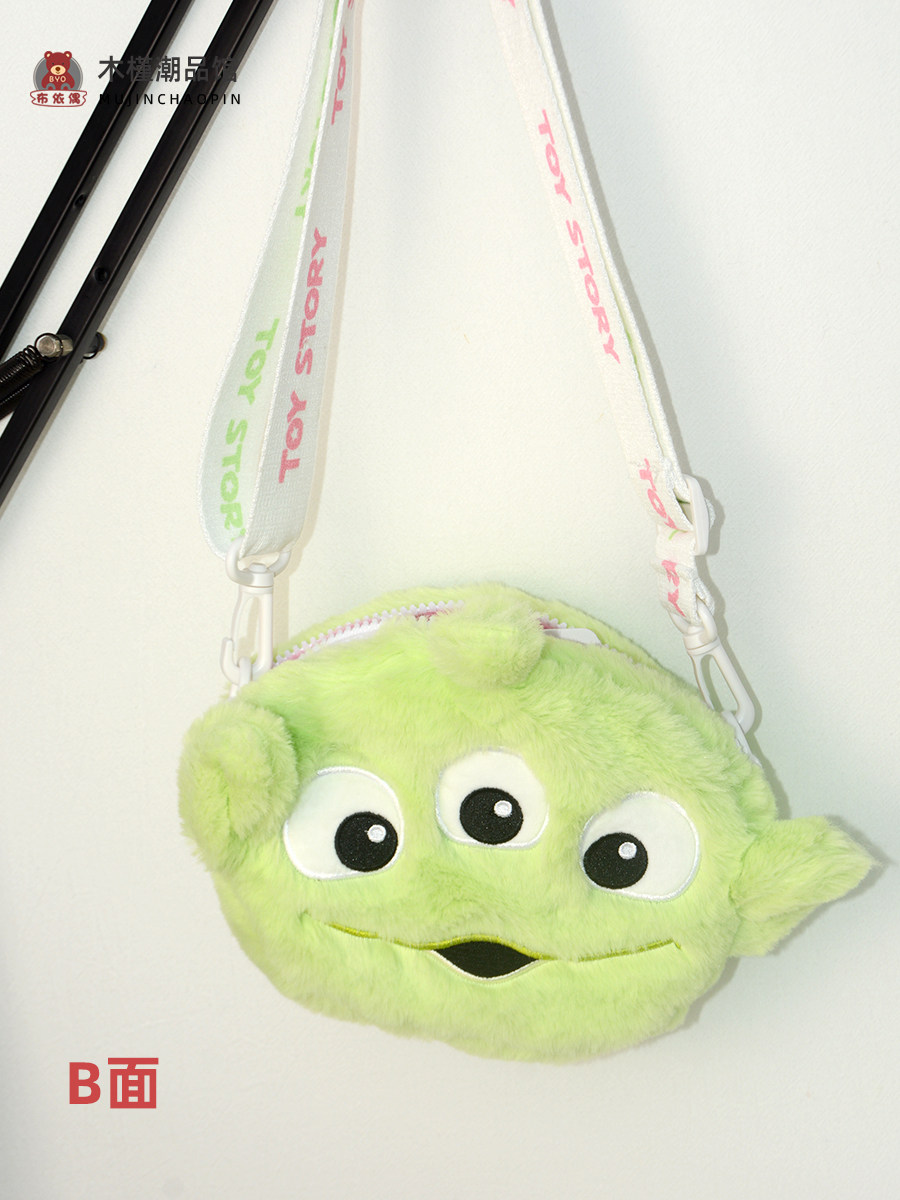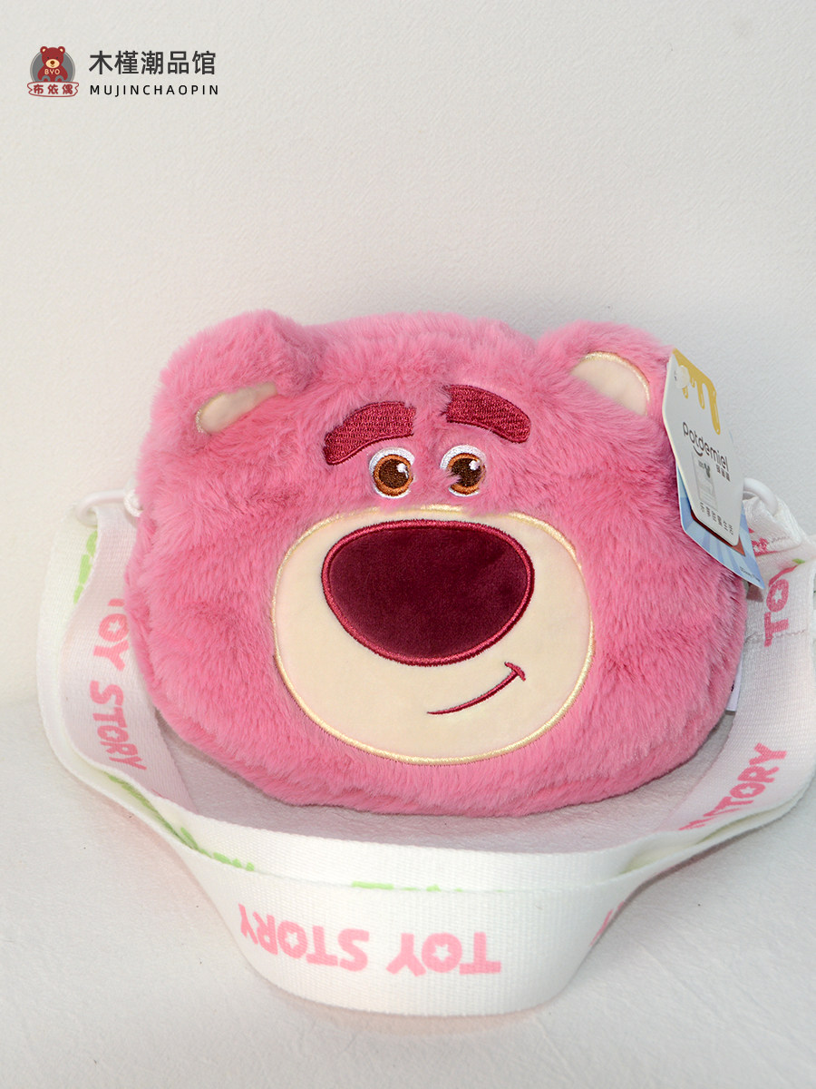 迪士尼草莓熊三眼仔双面毛绒包包单肩翻翻斜挎包女学生生日礼物