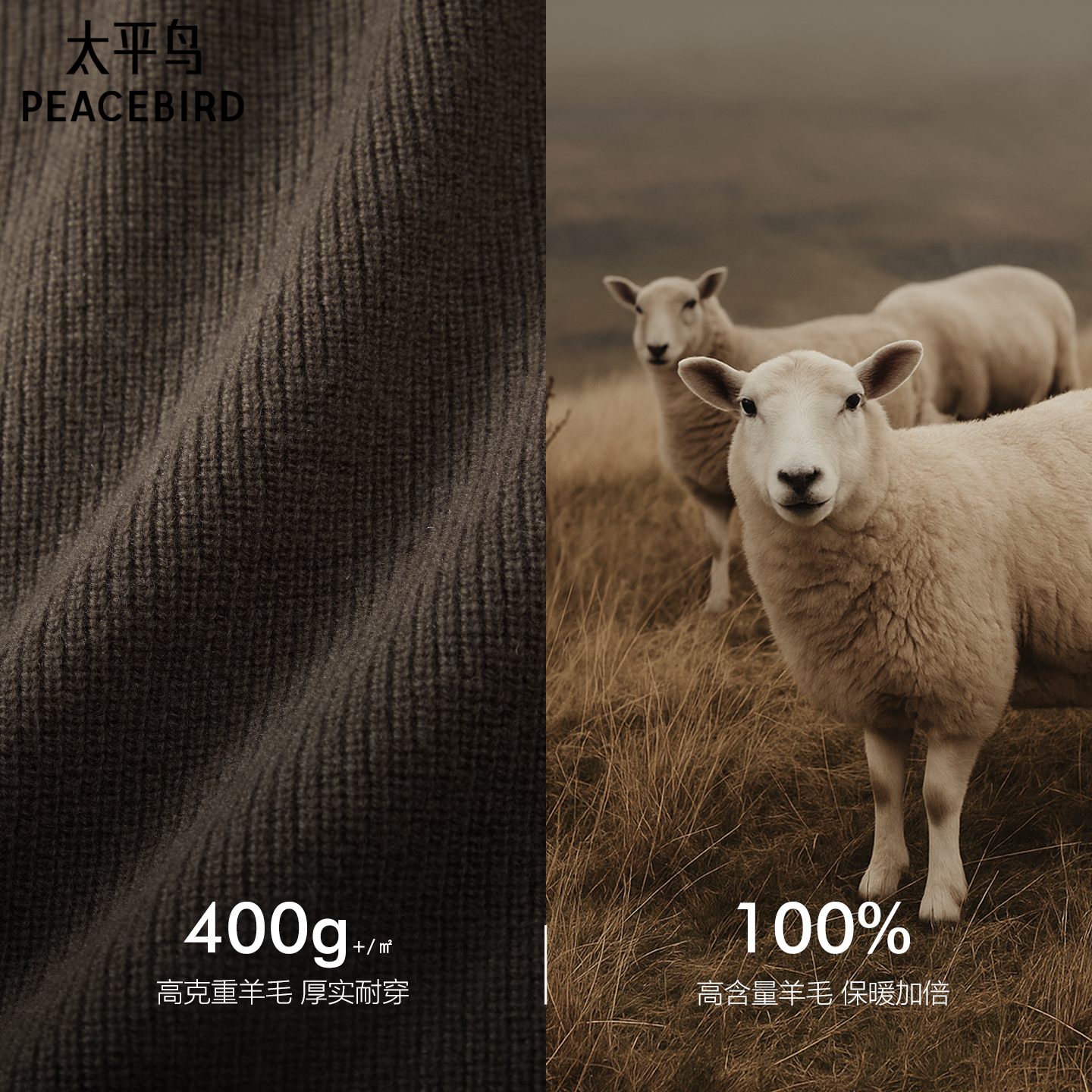 太平鸟男装 休闲毛衫2025冬季新款男士时尚纯色毛衣高品质羊毛衫