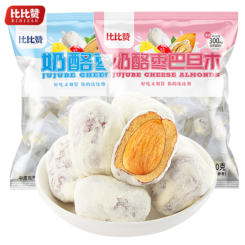 比比赞奶枣巴旦木夹心奶酪枣红枣杏仁去核枣仁小零食小吃休闲食BJ