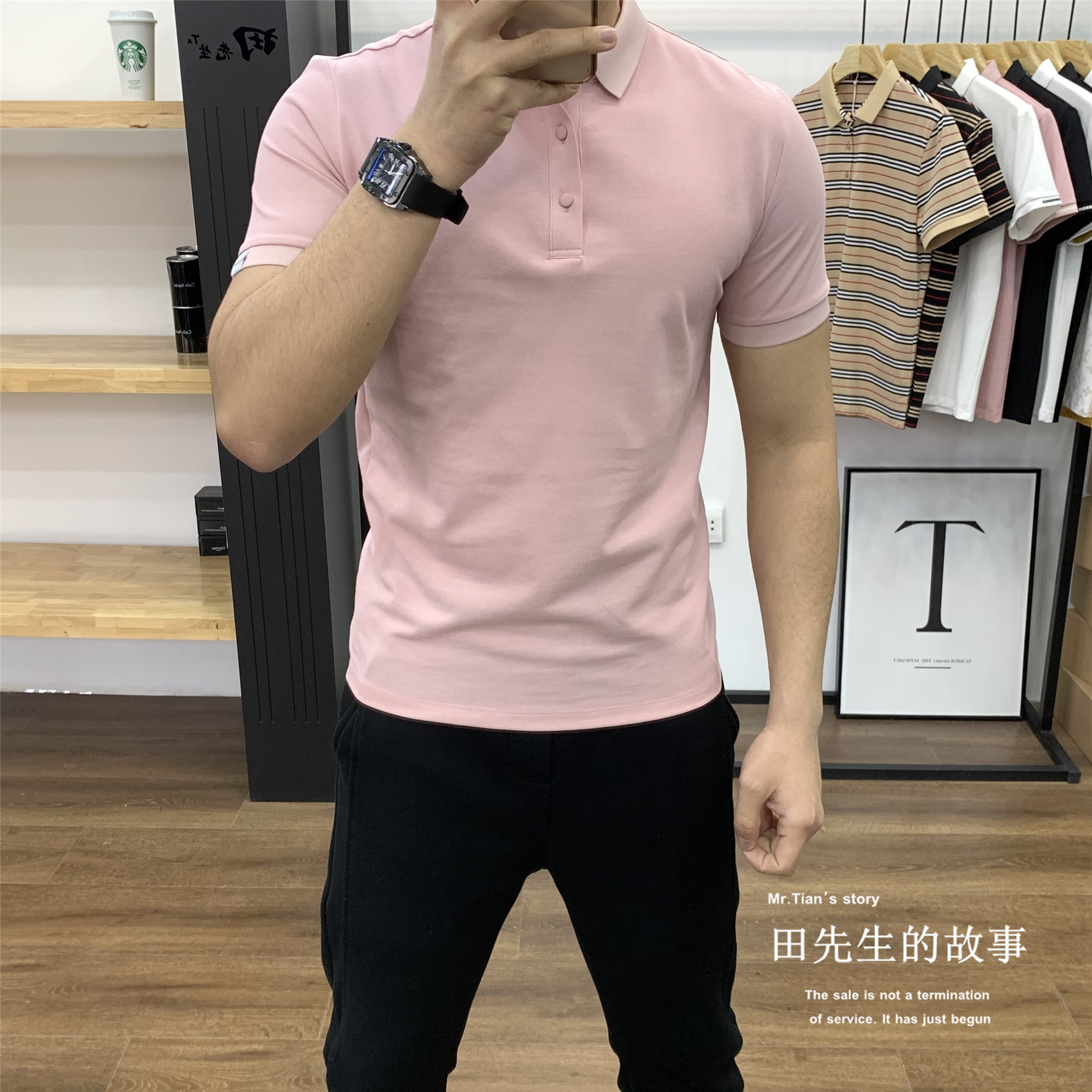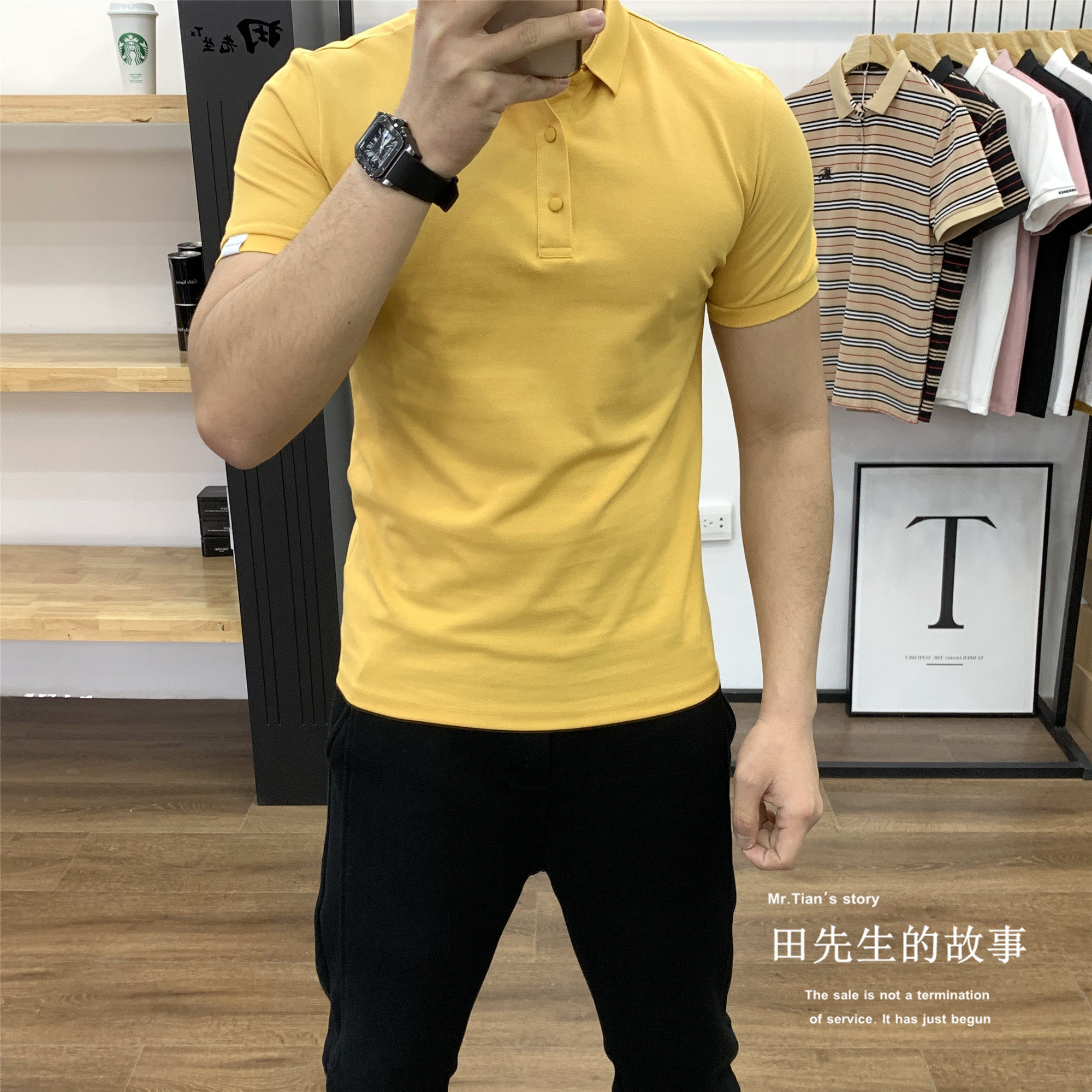 夏季纯色翻领珠地棉POLO衫修身商务青年短袖百搭健身休闲保罗上衣