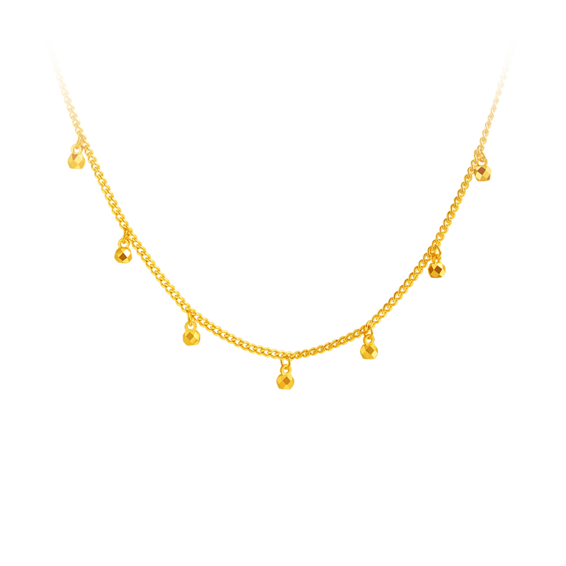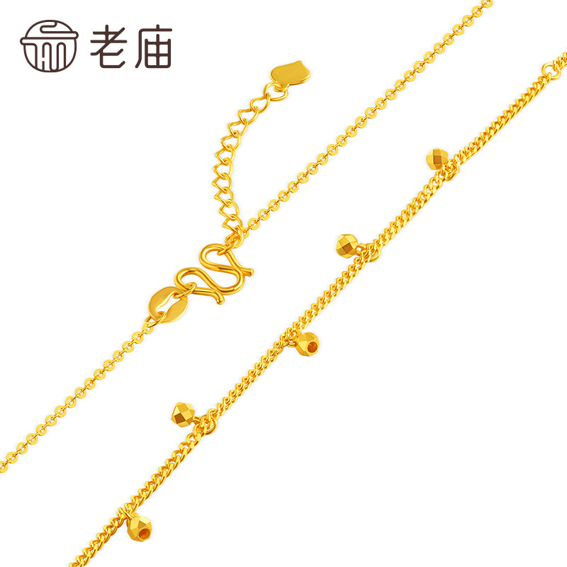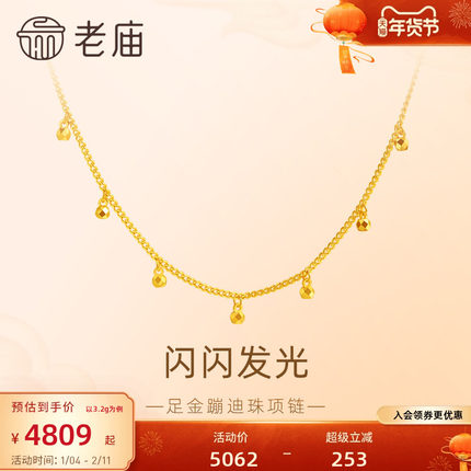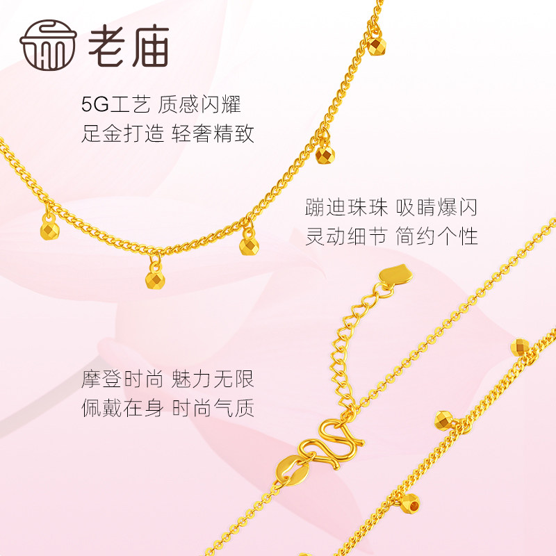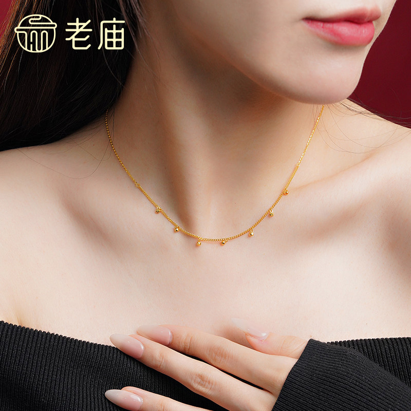 老庙黄金足金999小金珠项链5G工艺简约时尚气质百搭正品送礼