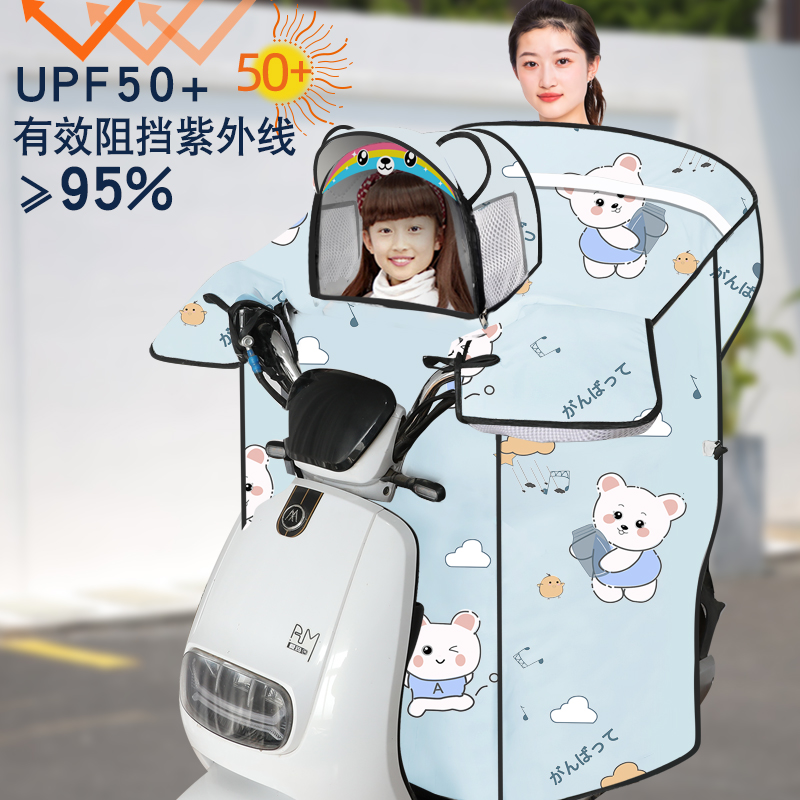 亲子儿童款电动车挡风被夏季防晒罩电车电瓶摩托防风防水防雨薄款