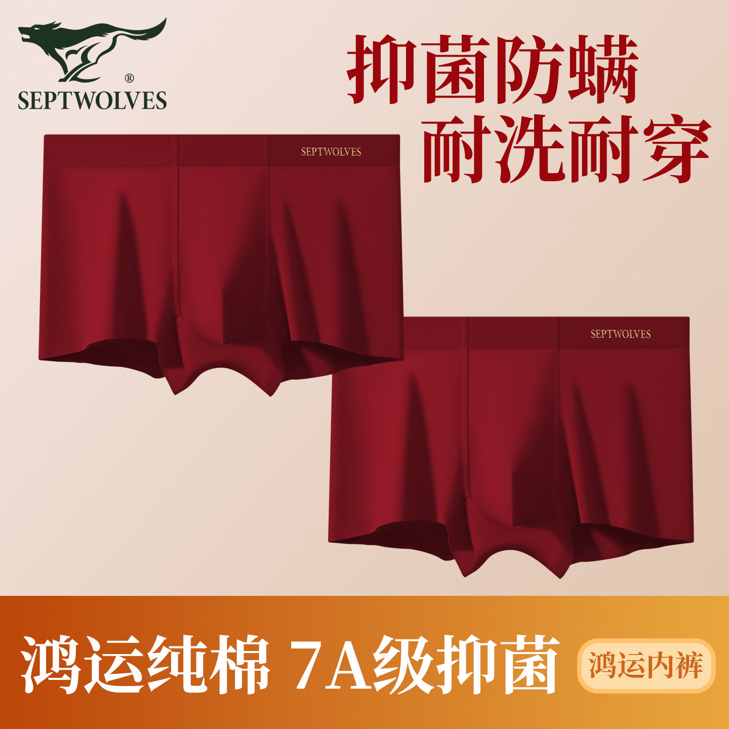 七匹狼男本命年纯棉红色内衣套装