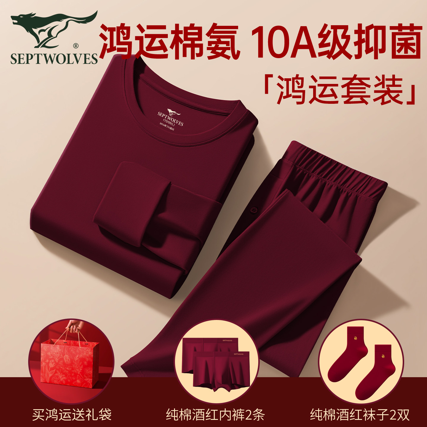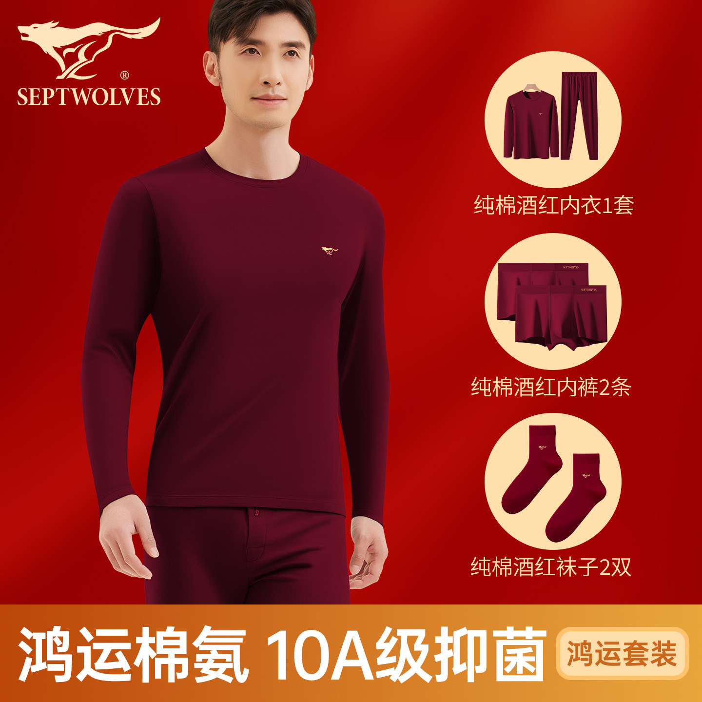 七匹狼本命年马年衣服男士保暖内衣套装爸爸红色礼物纯棉秋衣秋裤