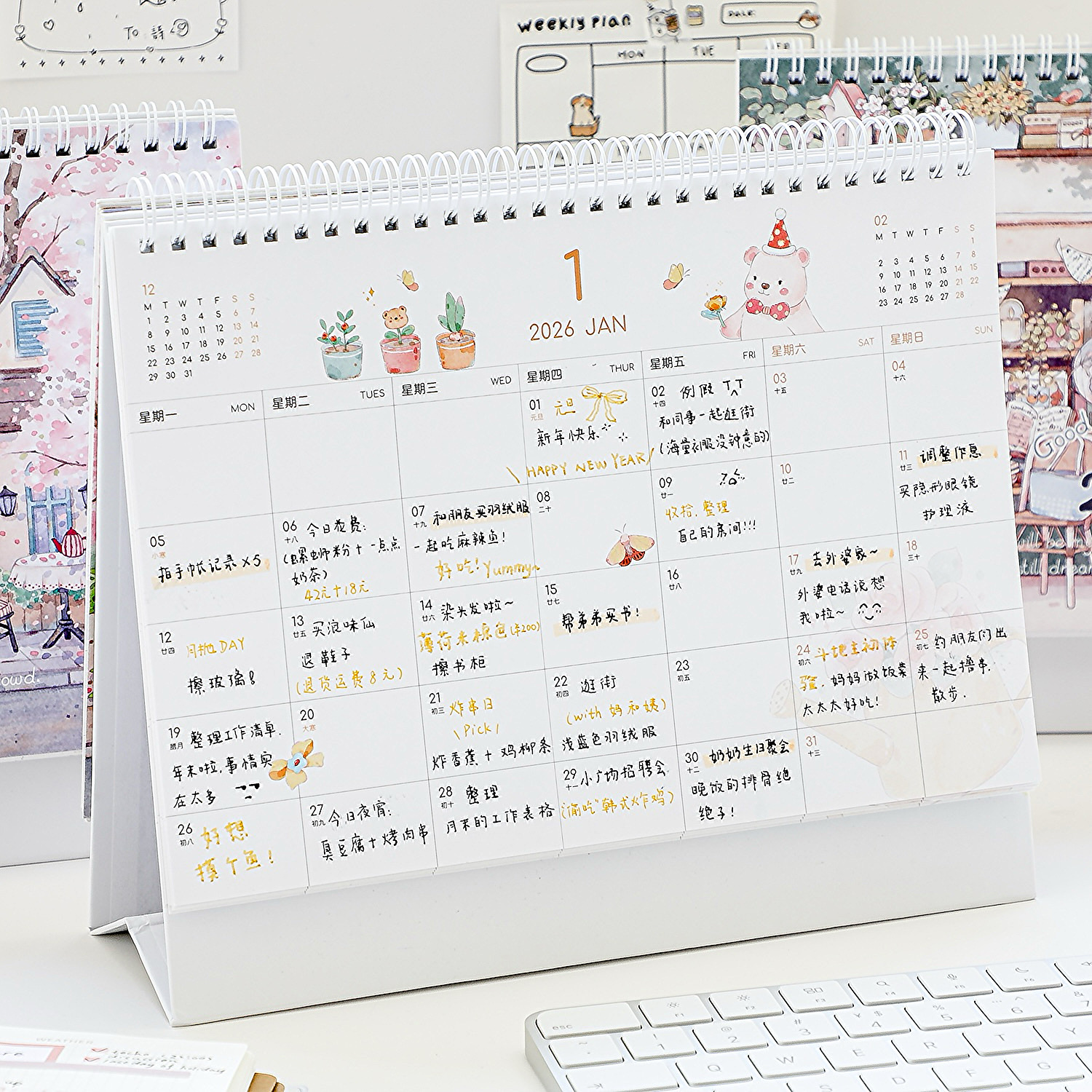 新款2025年台历可爱卡通2026年桌面日历办公室计划表年历月历摆件