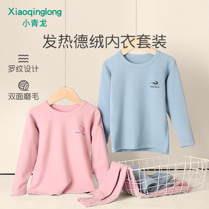 小青龙儿童德绒发热保暖内衣套装男童女童中大童青少年秋衣秋裤冬