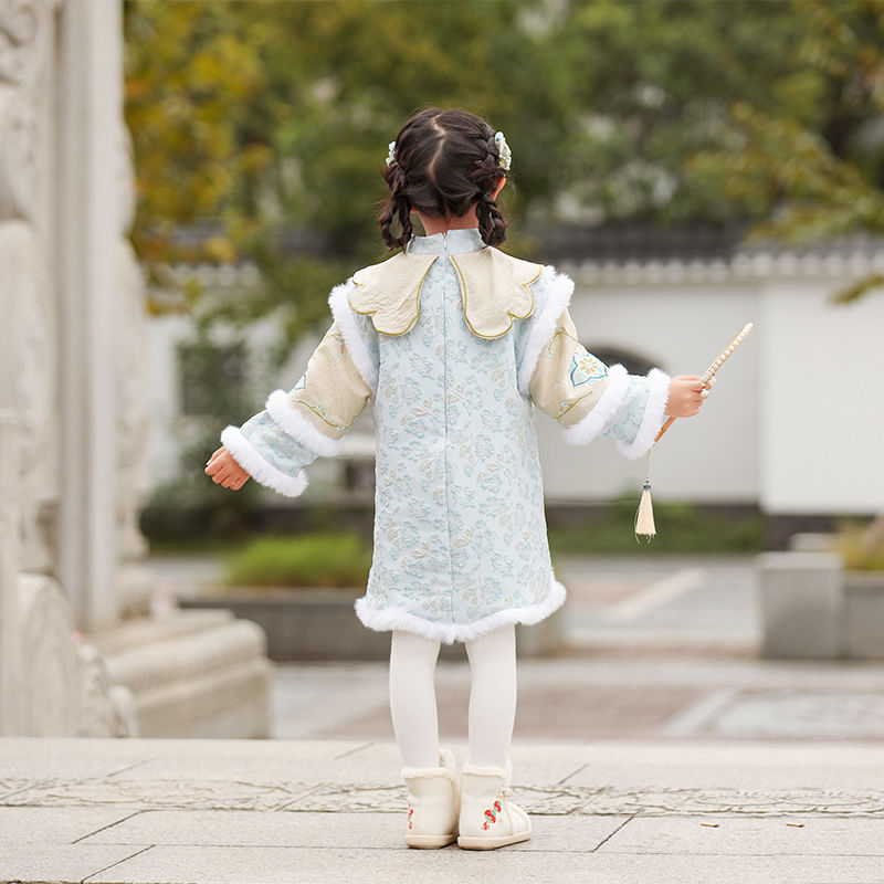 女童冬季原创高级连衣裙套装2024新款儿童加绒古装唐装汉服拜年服