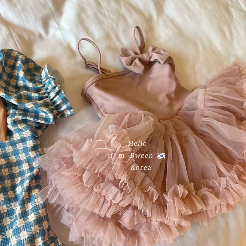 女童连体泳衣韩版童装23夏季新款洋气韩系格子时尚女孩裙子游泳衣