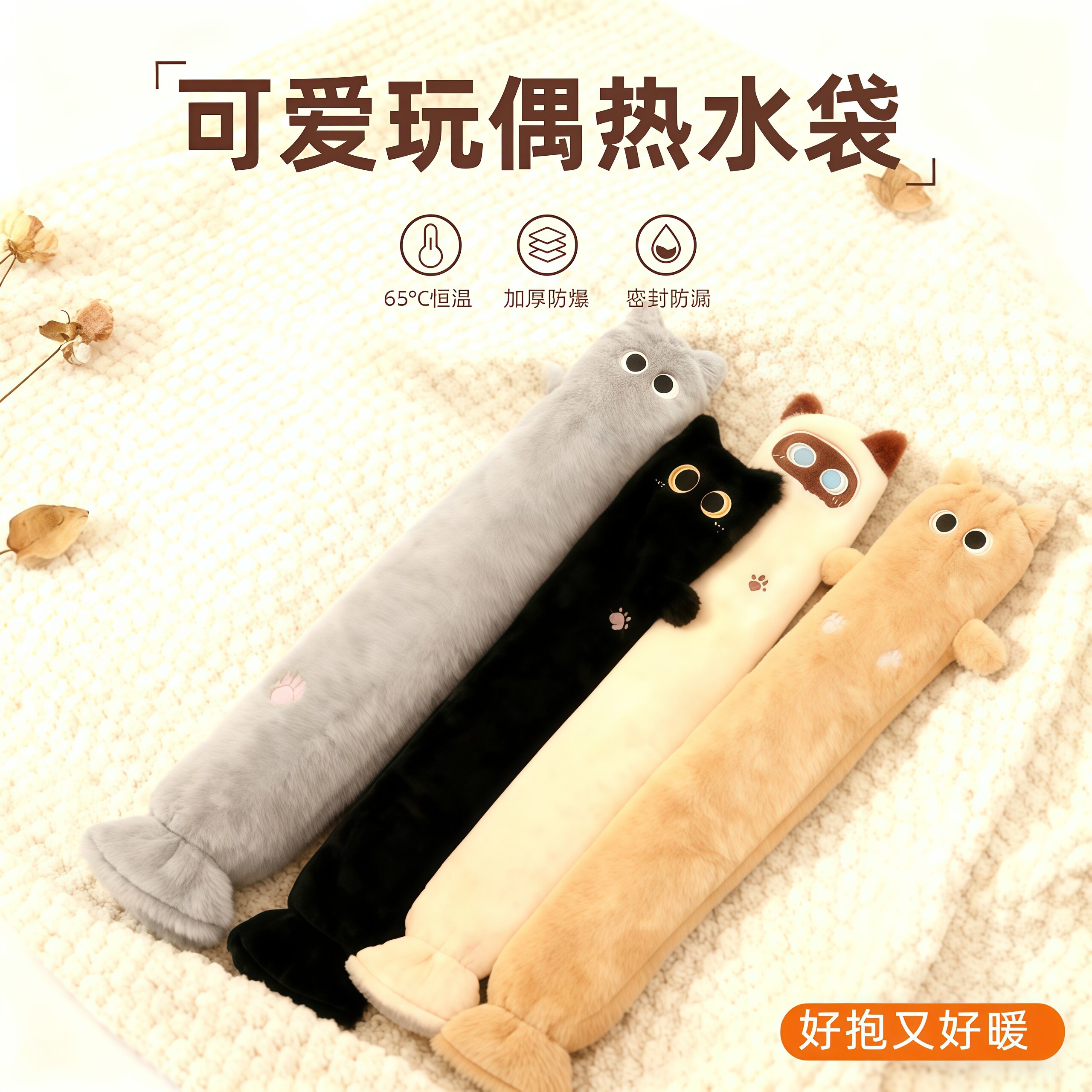 冬季暖被窝神器注水式加绒玩偶暖水袋长条灌水暖手宝抱枕热水袋