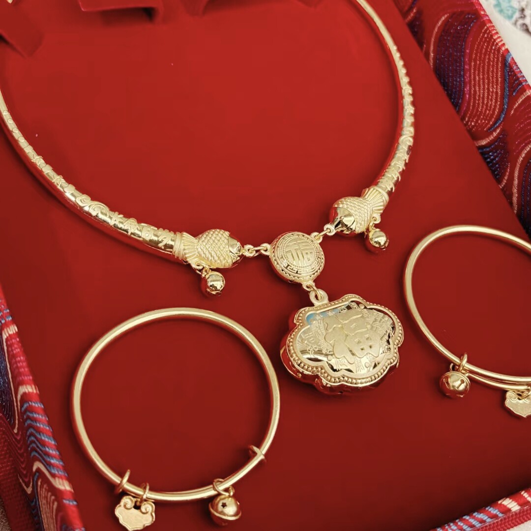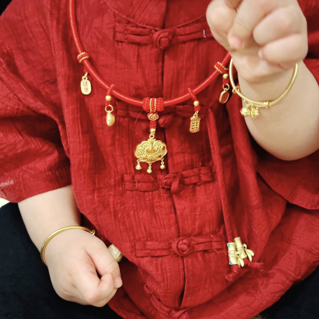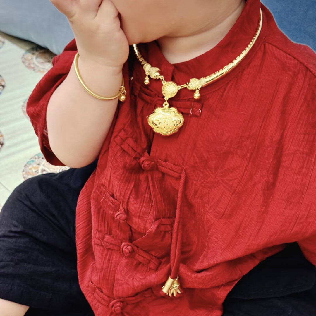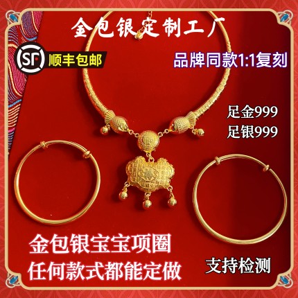金包银宝宝项圈黄金包银长命锁吊坠宝宝手镯婴儿满月周岁百天礼物