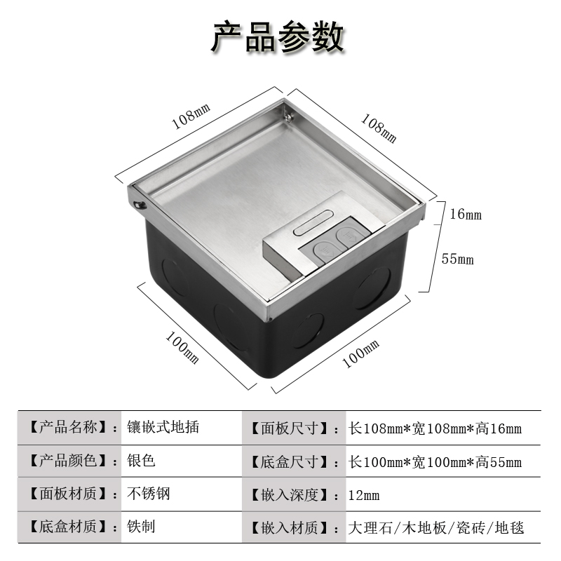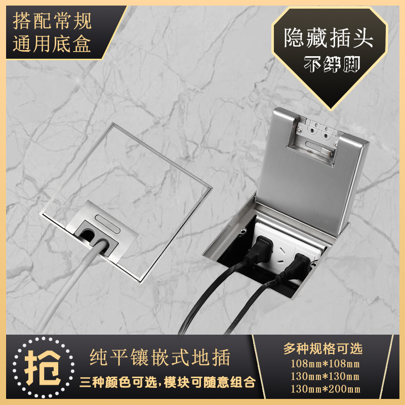 304不锈钢地插座隐藏式五孔网络侧插镶嵌大理石瓷砖地毯地板地插