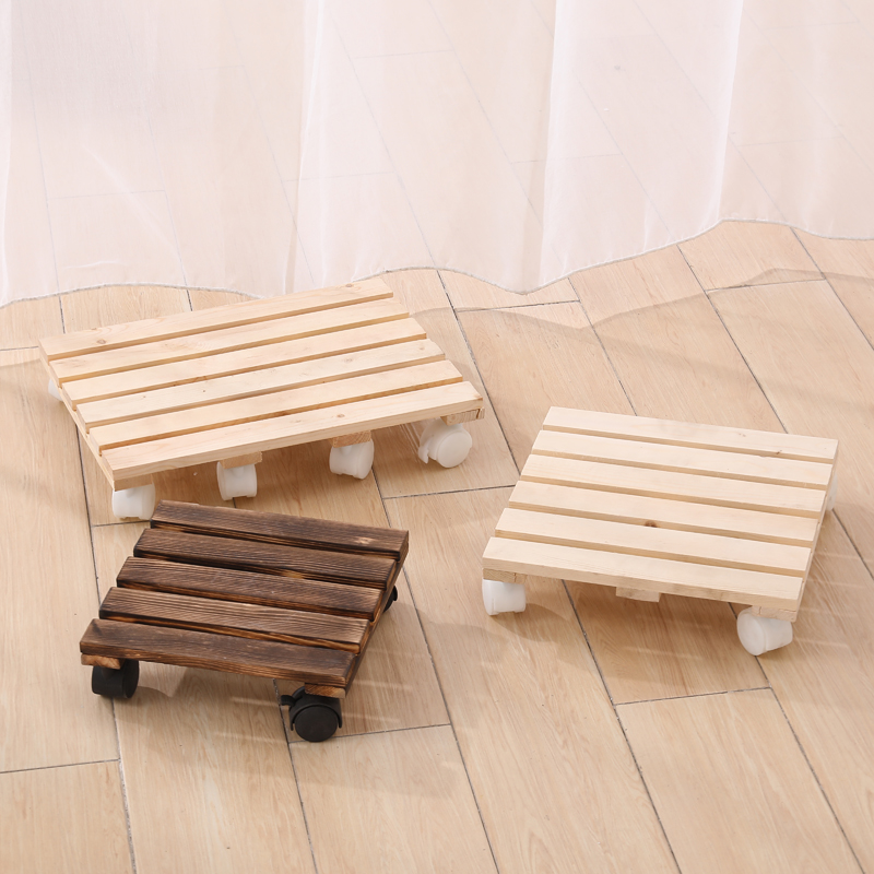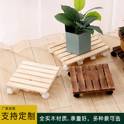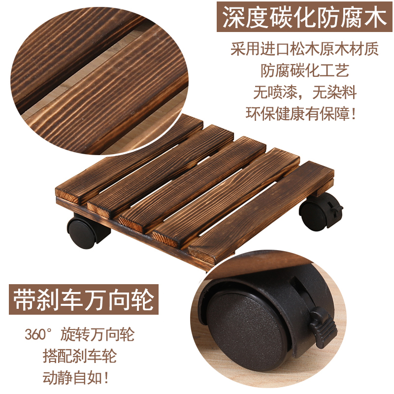 移动带轮底座花盆托盘万向轮滚轮长方形实木质花托架滑轮底盘加厚