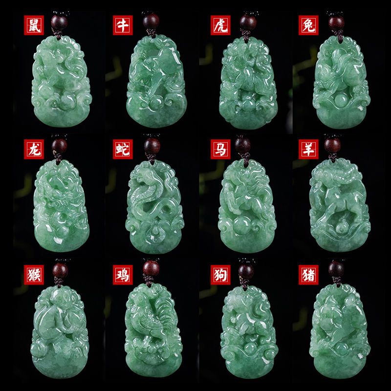 翡翠十二生肖玉吊坠天然12生肖项链属鼠牛虎兔马羊猴狗猪