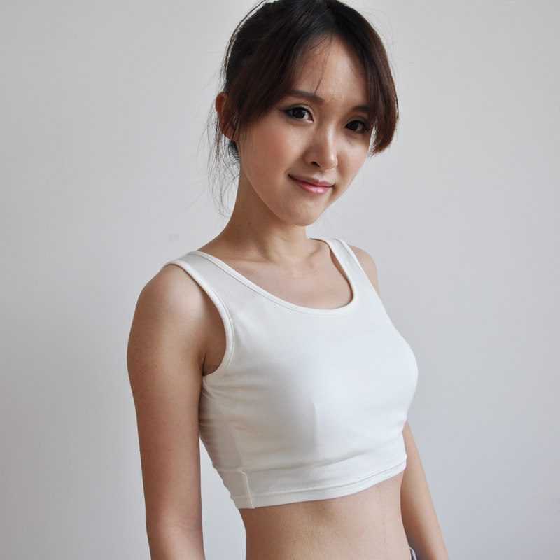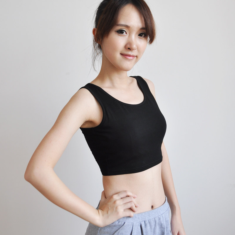莫代尔肉色半截吊带背心短款无袖打底衫bra免文胸带胸垫工字内衣