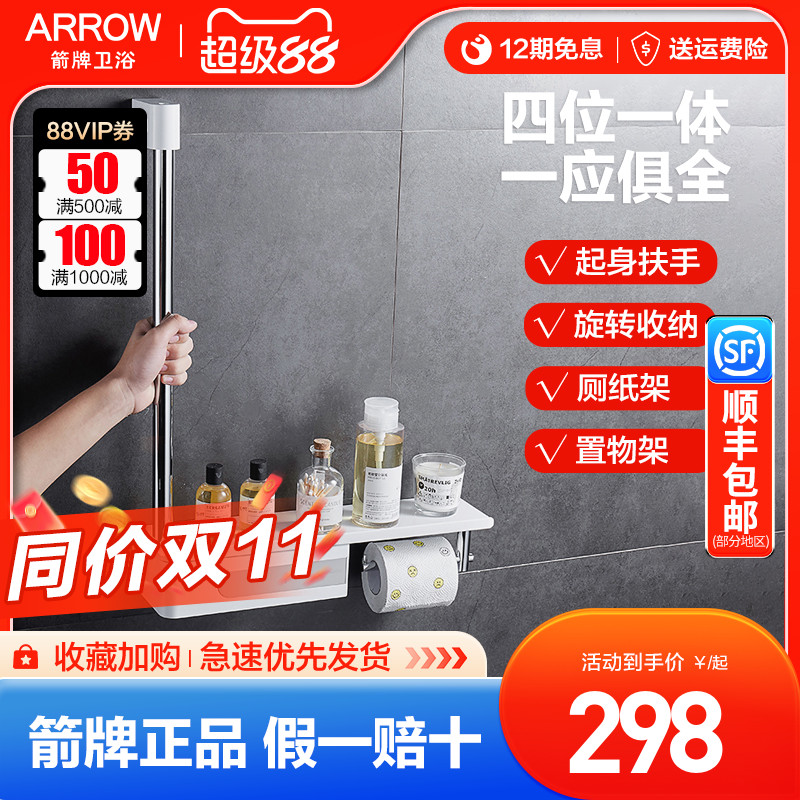 箭牌卷纸架厕纸架厕纸盒带扶手 洗手间卫生间置物架打孔 适老卫浴