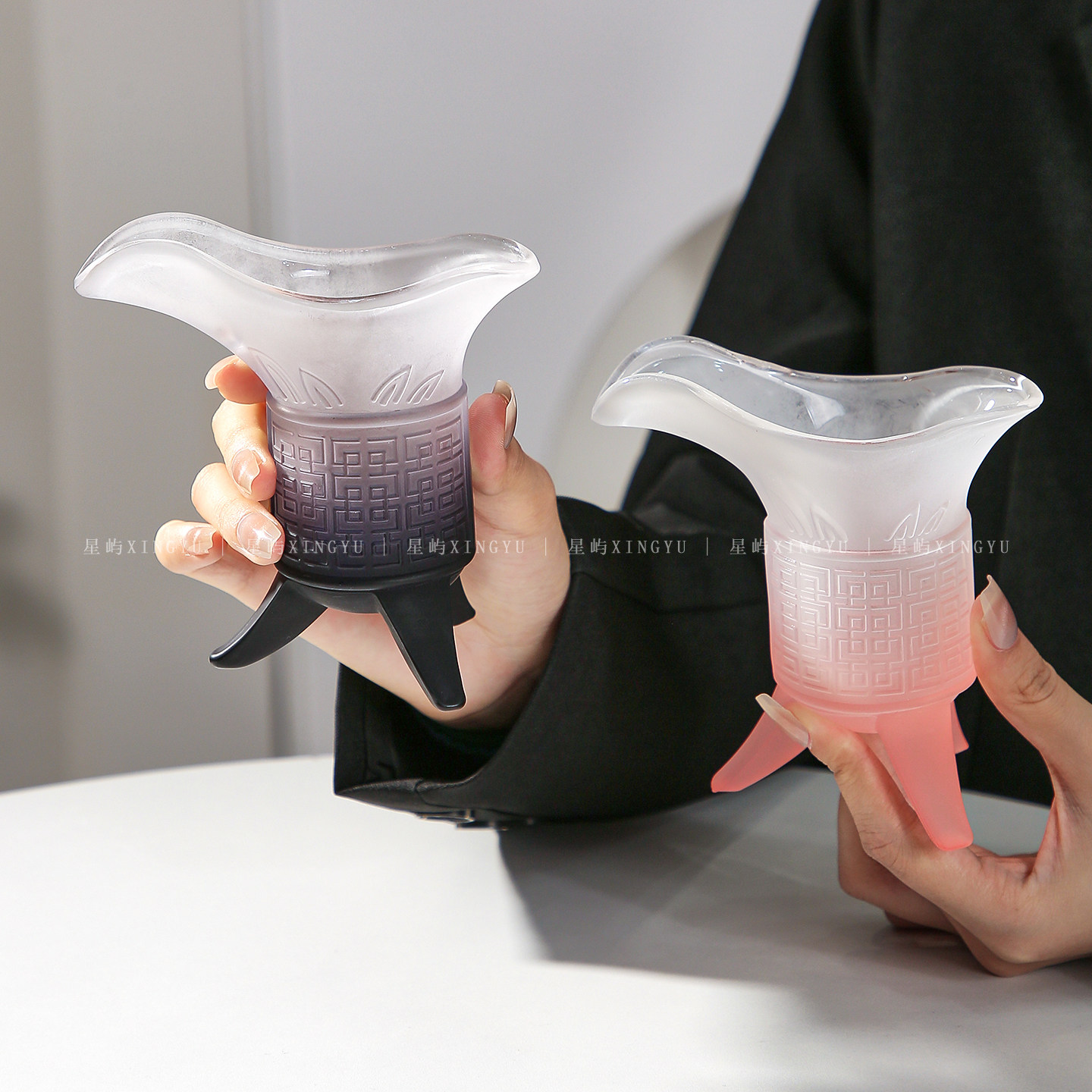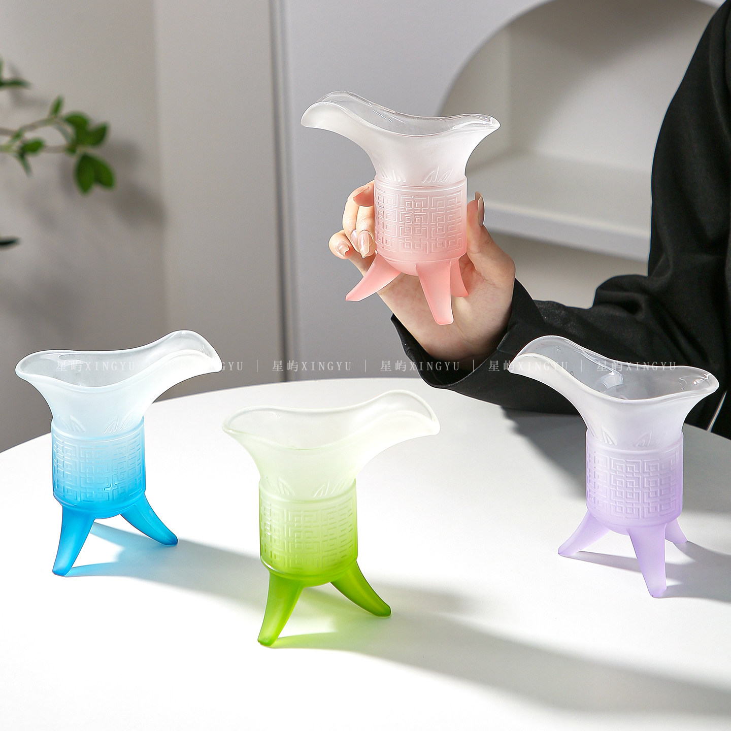 关中王玻璃杯子帝王杯秦始皇三足侯爵二两酒杯古代家用稀奇古怪杯