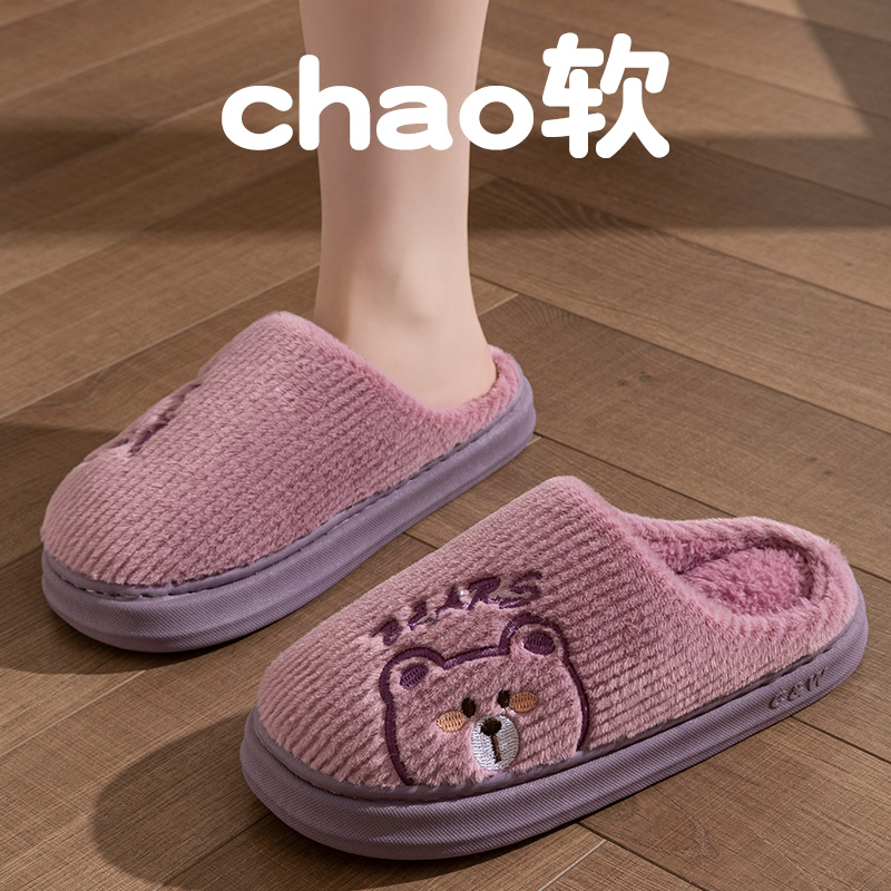 棉拖鞋女士秋冬季2024新款家居室内厚底防滑保暖加绒毛毛棉拖鞋女