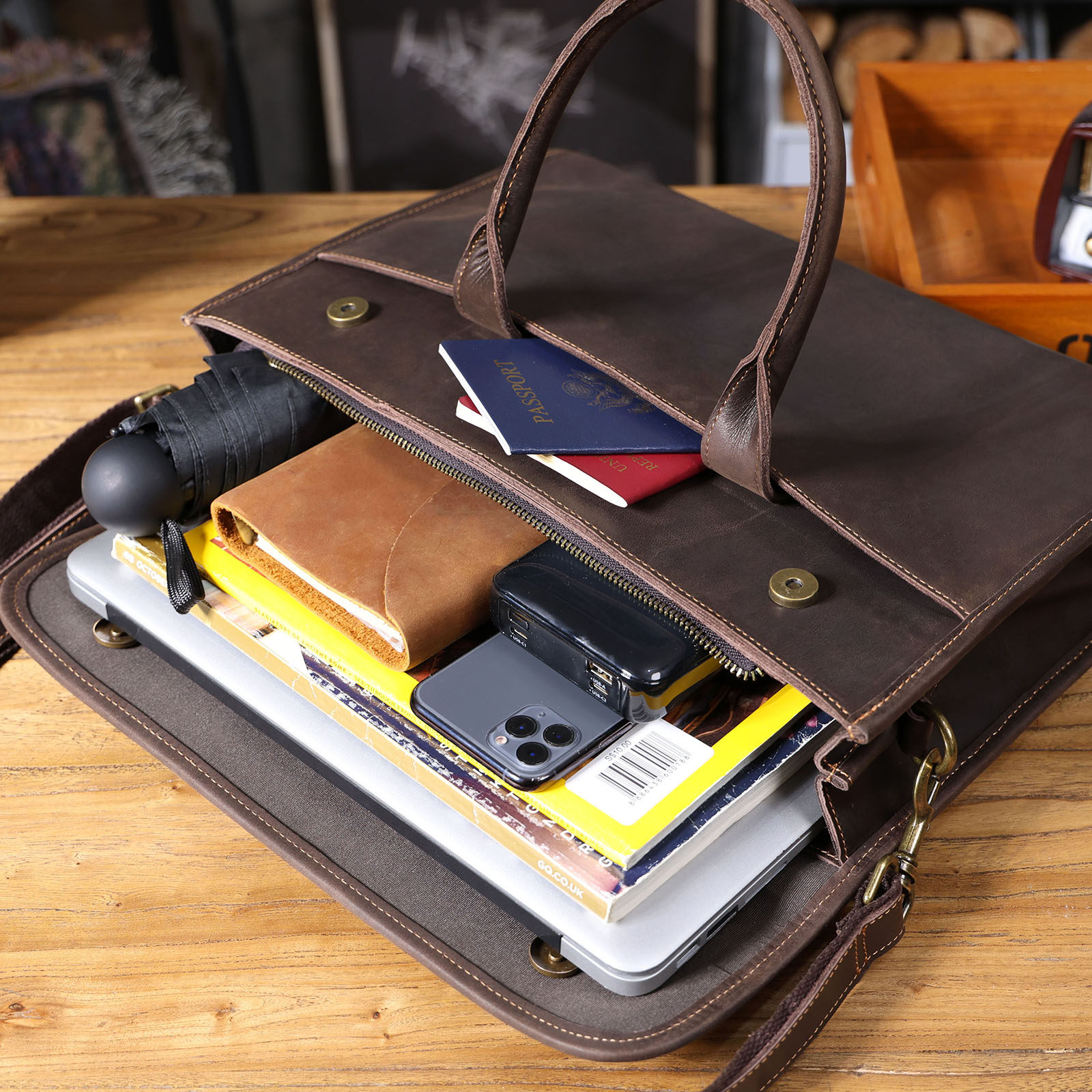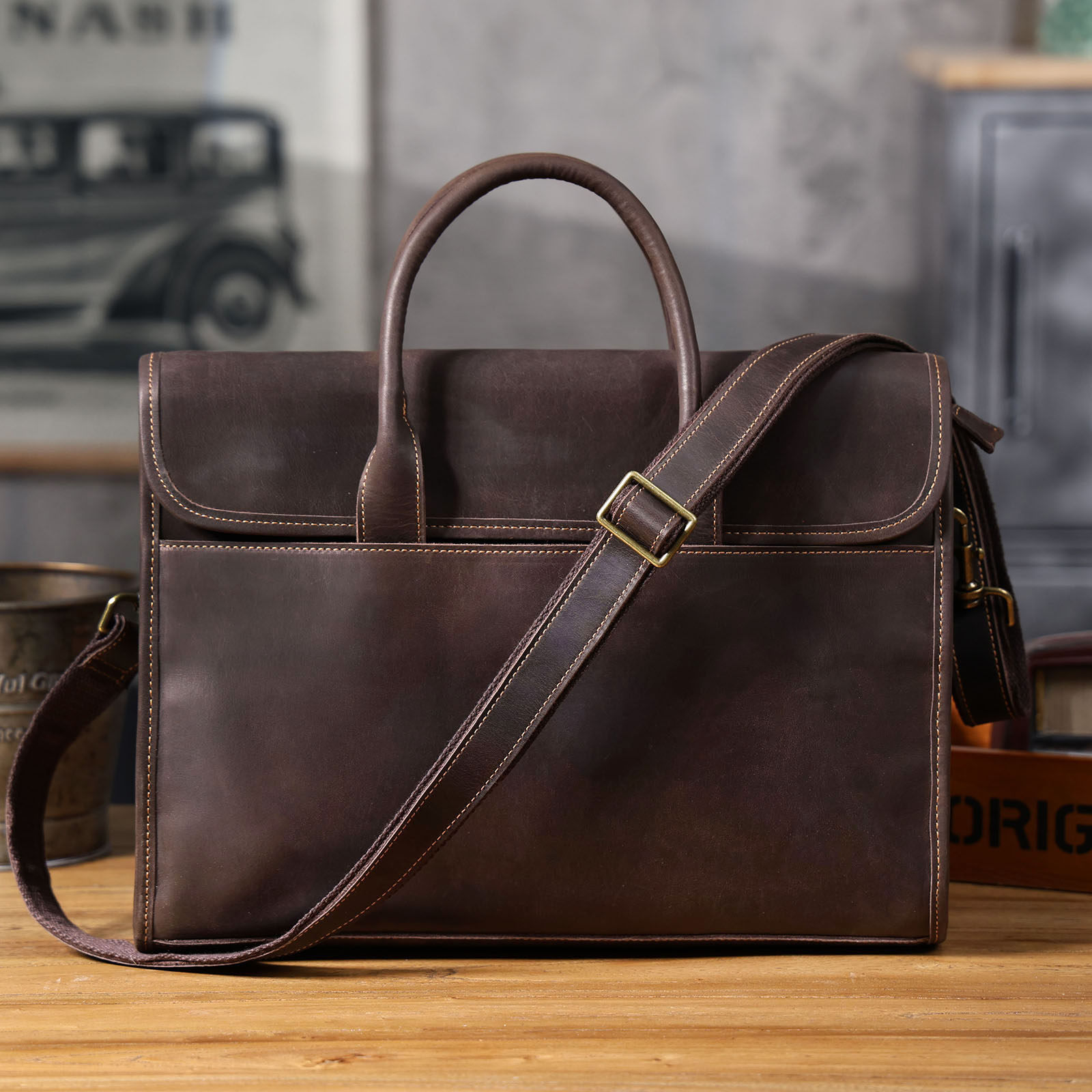 疯马皮男包手提包公文包商务单肩斜挎复古真皮电脑包男士头层牛皮
