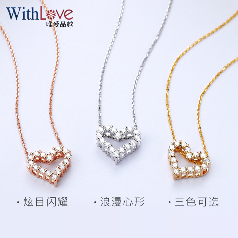 WithLove 浪漫心形钻石吊坠女白18K金轻奢锁骨项链真钻显大送女友