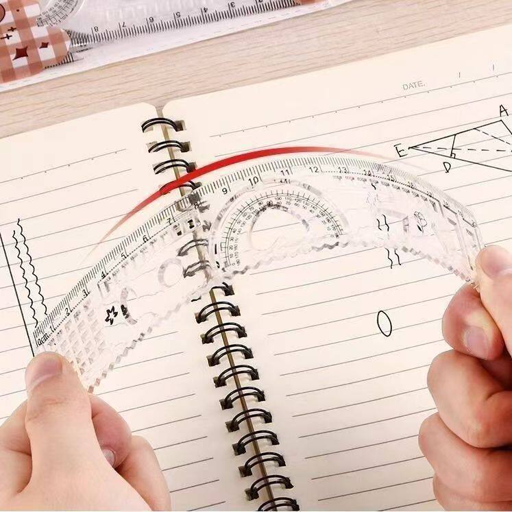 孔庙应福透明尺子套装4件套可画波浪考试专用测量工具结实耐用