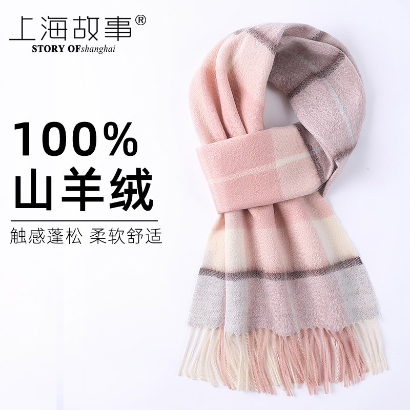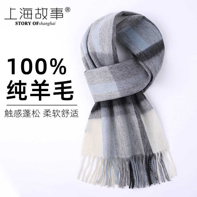 上海故事纯羊毛羊绒女士围巾秋冬季保暖男围脖高档送妈妈爸爸礼物
