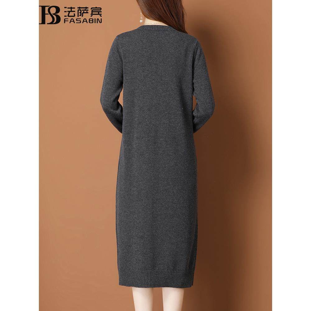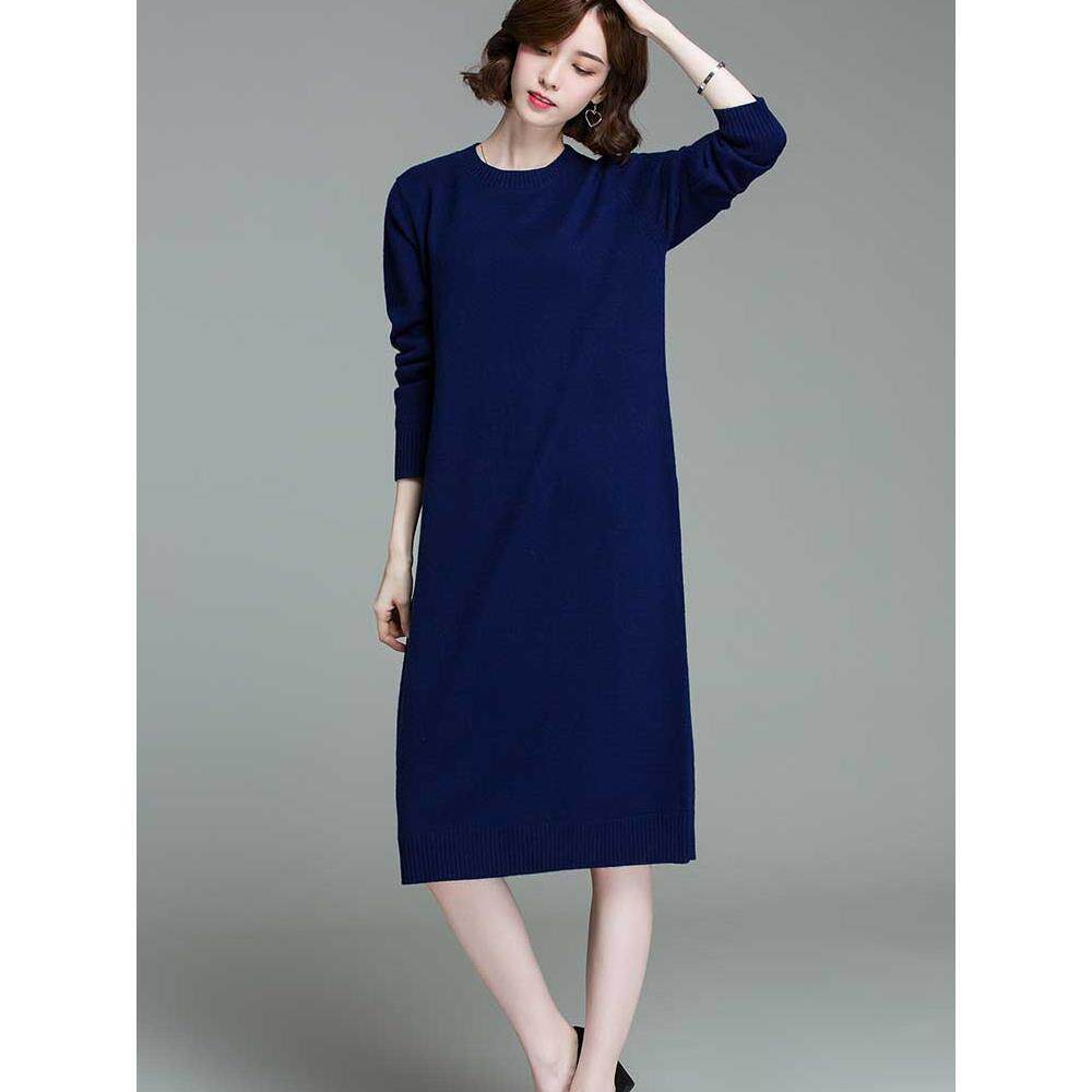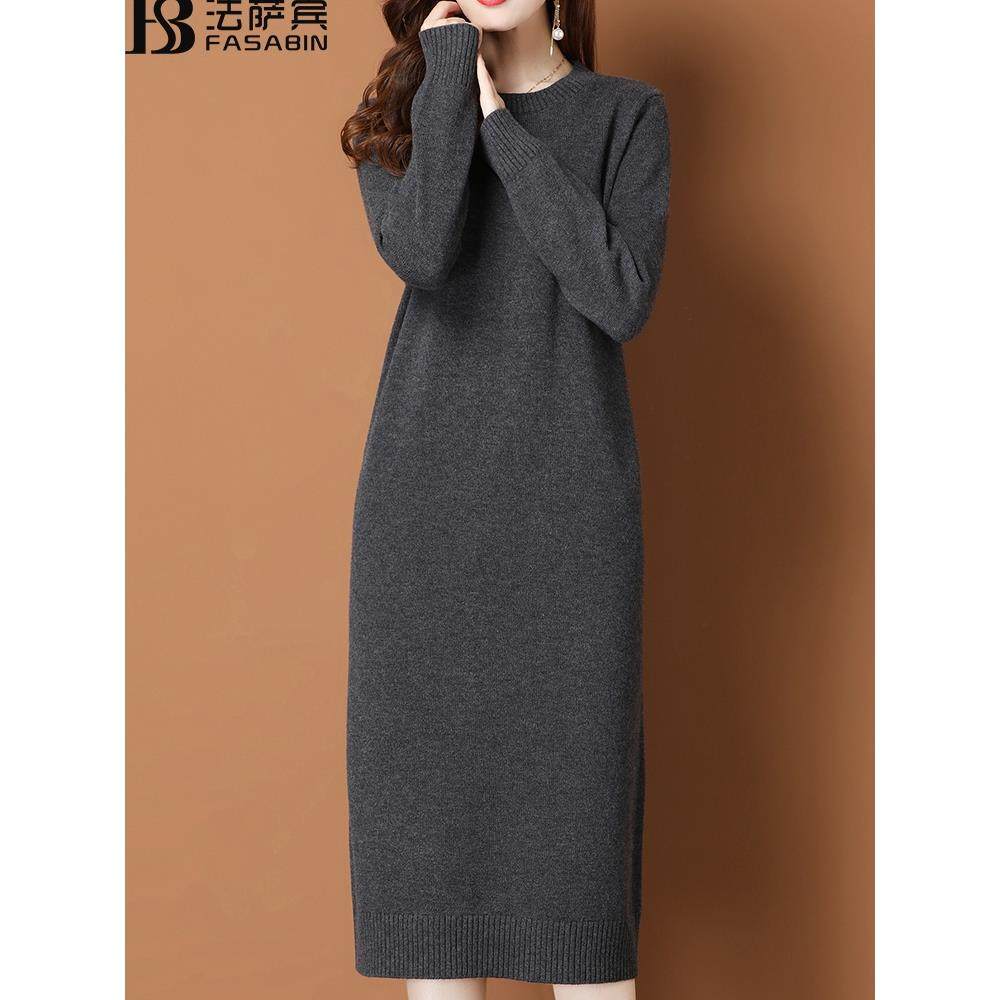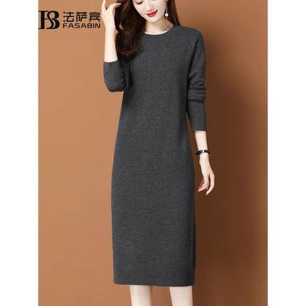 套头圆领中长款纯羊毛毛衣打底连衣裙2025秋冬针织羊毛衫内搭女士