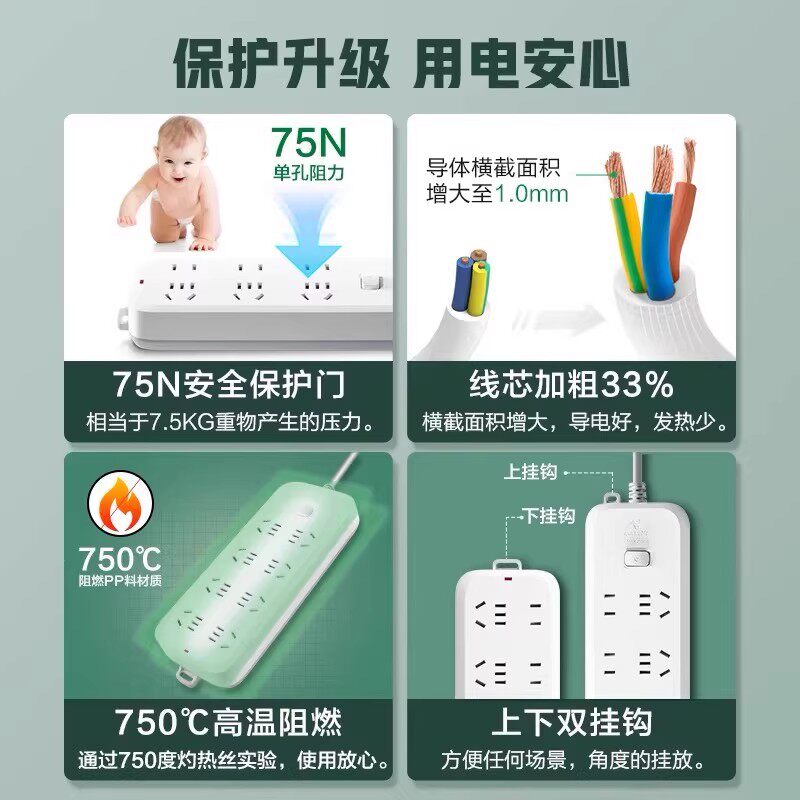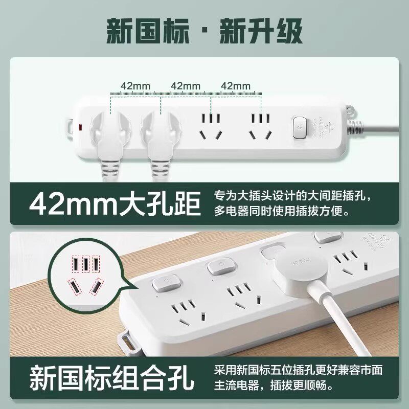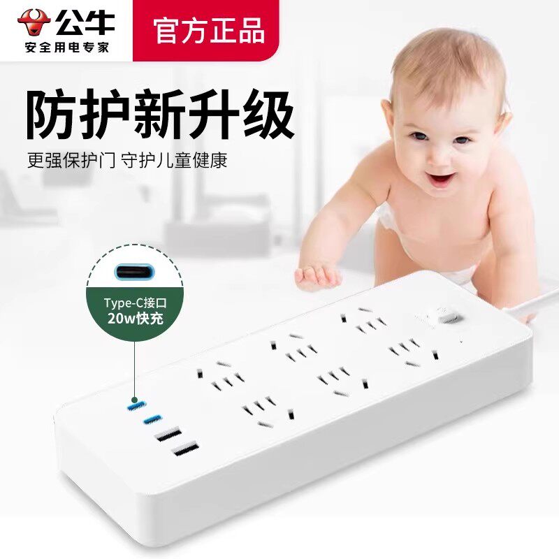 公牛插座插线板插排多功能家用插板带线带usb多用多口充电快充