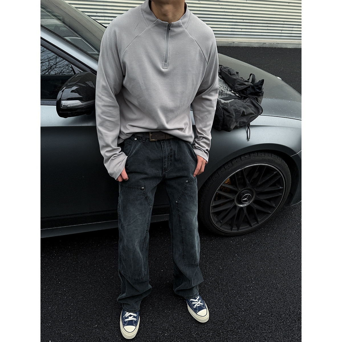 MANCHER 美式复古水洗做旧牛仔裤男宽松BO1伐木裤纯棉直筒长裤潮