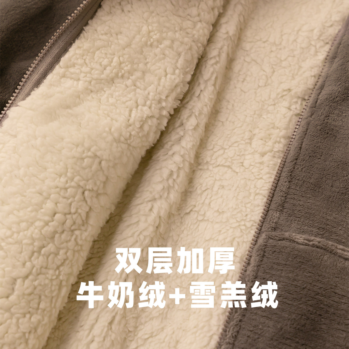 【双层加厚】睡衣男款秋冬季羊羔绒拉链牛奶绒情侣珊瑚绒家居服女