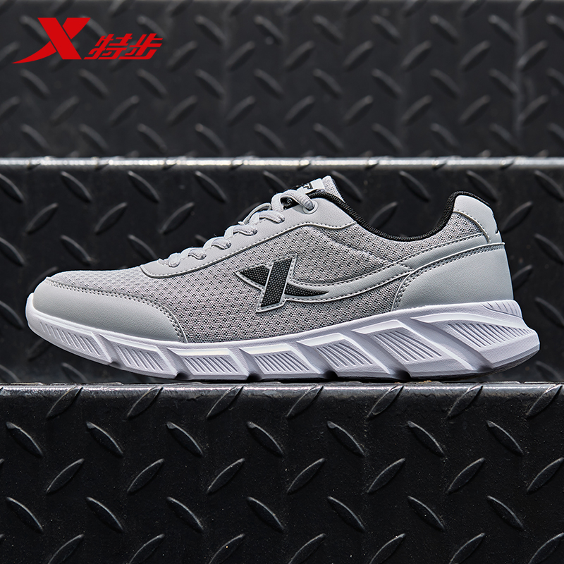 特步男鞋春秋透气网面百搭慢跑鞋父亲运动鞋休闲旅游鞋跑步鞋正品