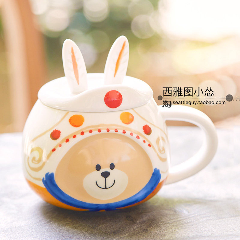 秋日玉兔将军传统小熊星巴克杯子