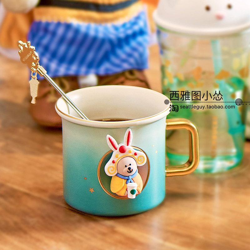 星巴克杯子2024中秋秋日玉兔兔将军传统造型小熊马克杯保温随行杯