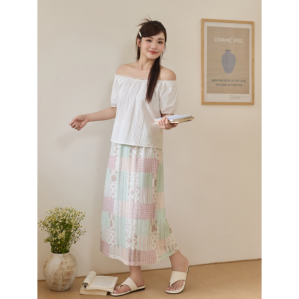 【清仓】小波家2025夏季胖mm韩系温柔风气质高腰彩色直筒半身裙