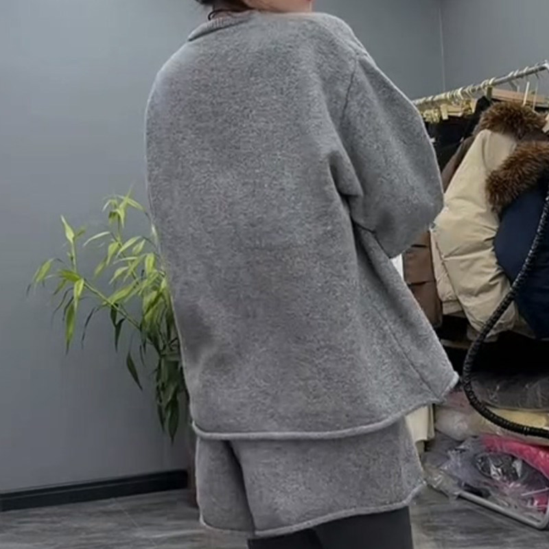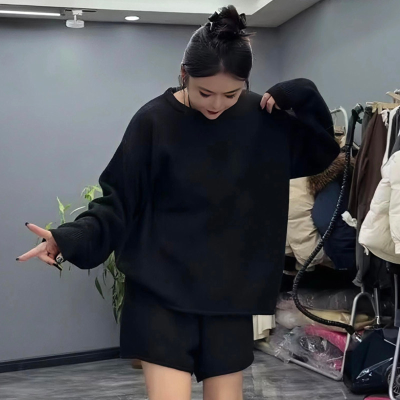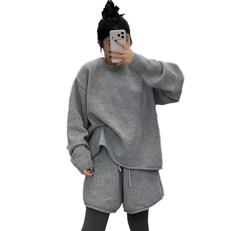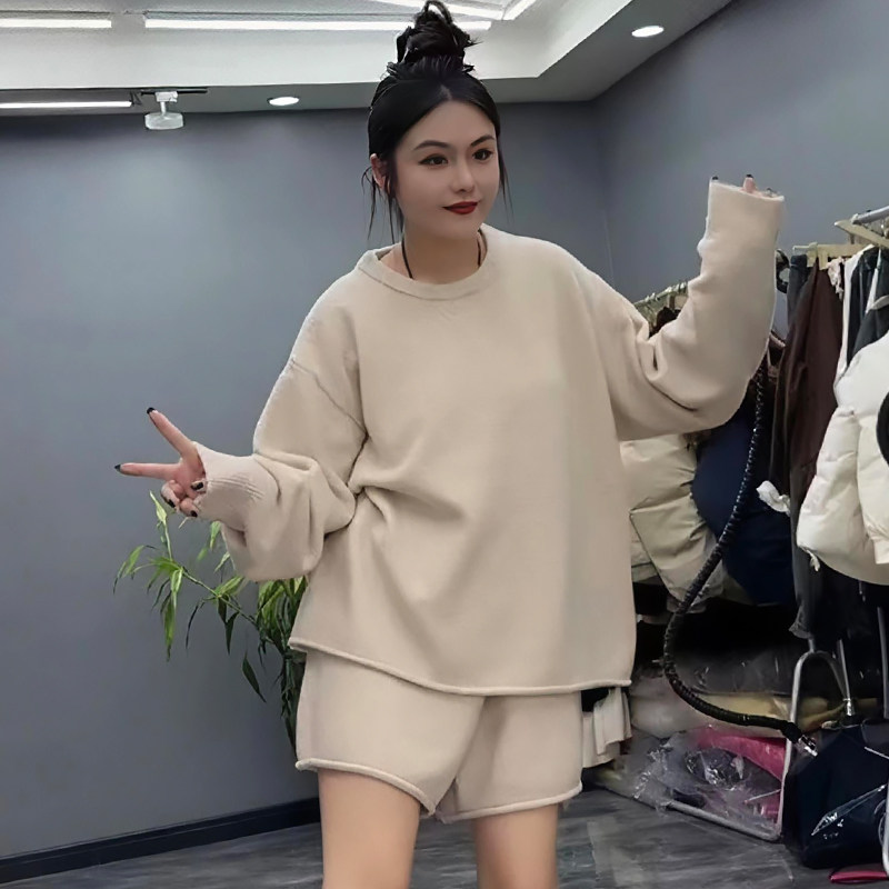 小众设计感圆领毛衣短裤子套装潮