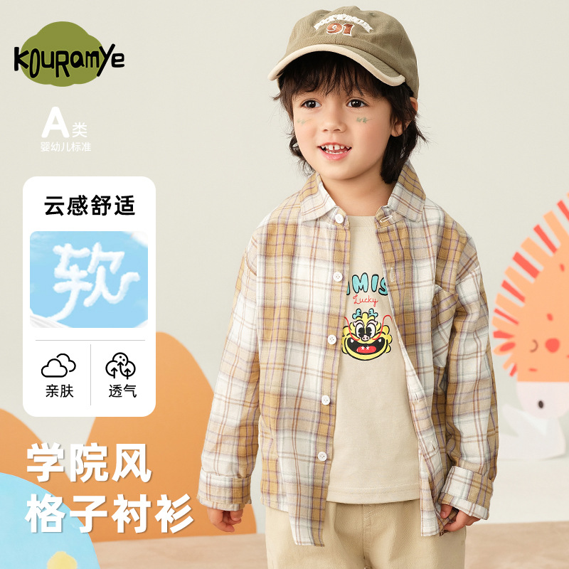 酷娃米2025儿童长袖格子衬衫男宝宝春秋韩版外套男童衬衣婴儿上衣