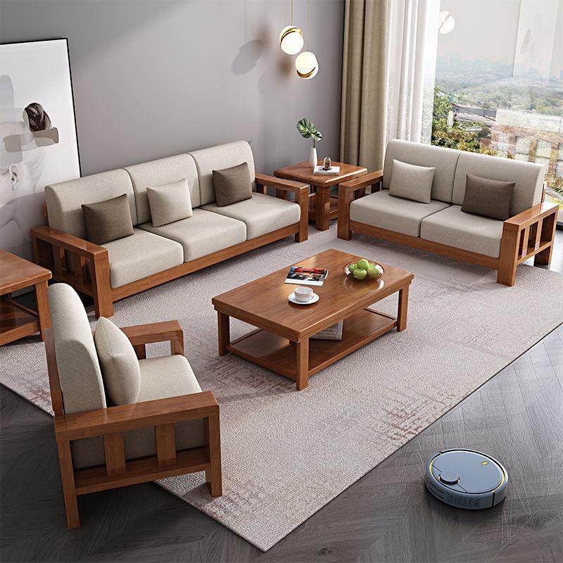 中式实木沙发组合出租房沙发现代简约小户型客厅贵妃转角布艺沙发