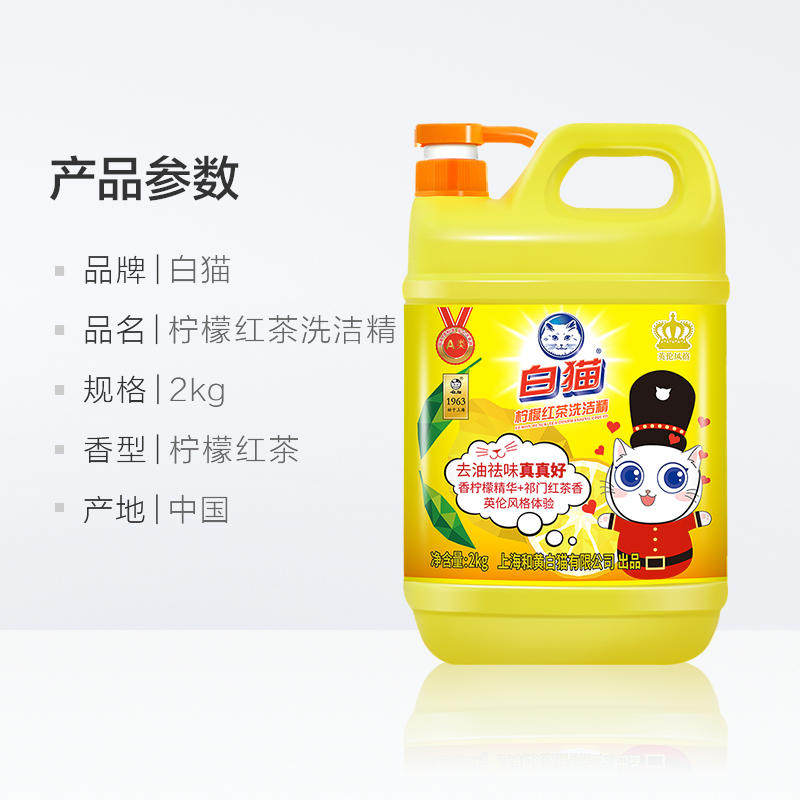白猫柠檬红茶洗洁精2kg去油易冲洗温和洗碗液A类配方可洗蔬果