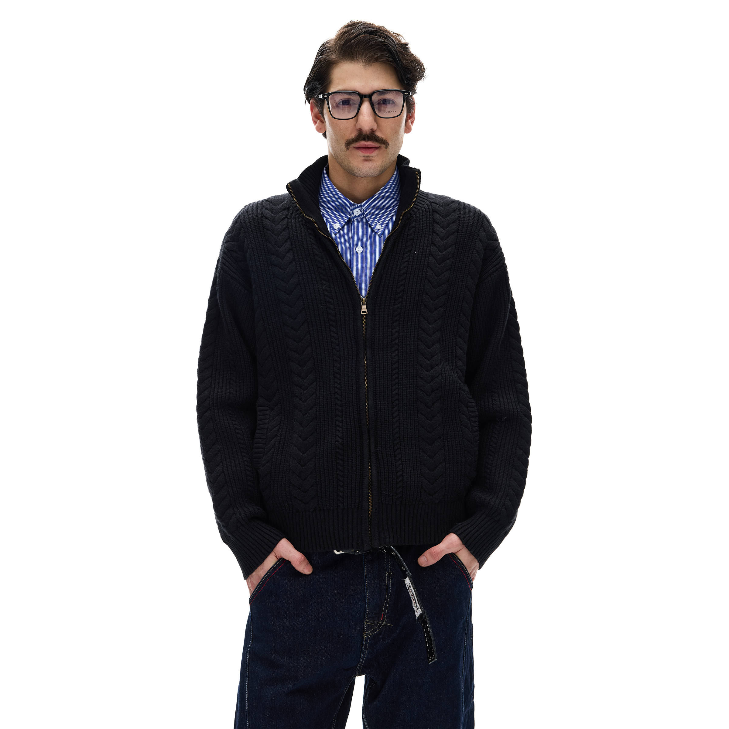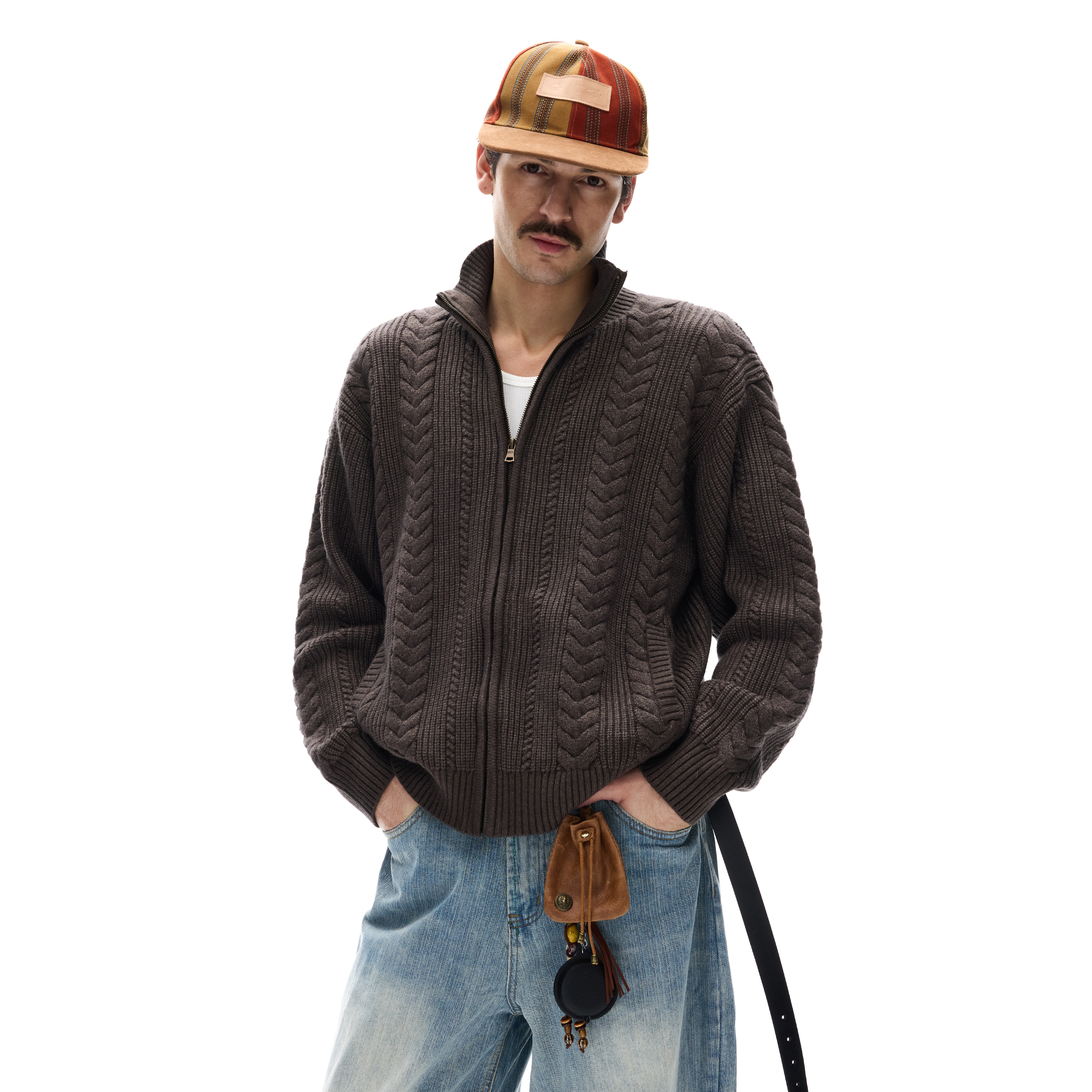 MADWITCH美式复古编织麻绞花肌理针织衫毛衣男女秋冬休闲开衫外套
