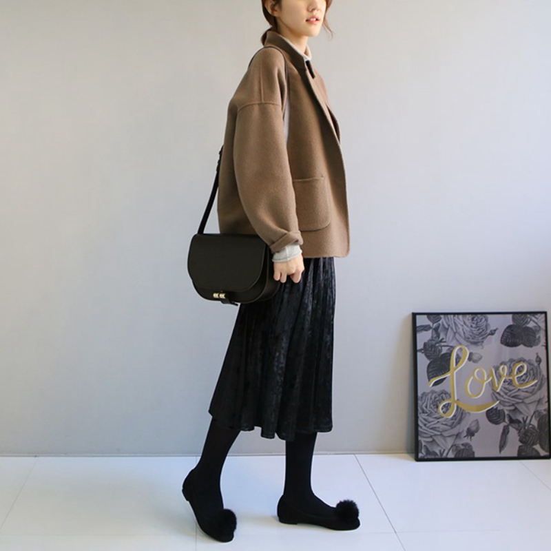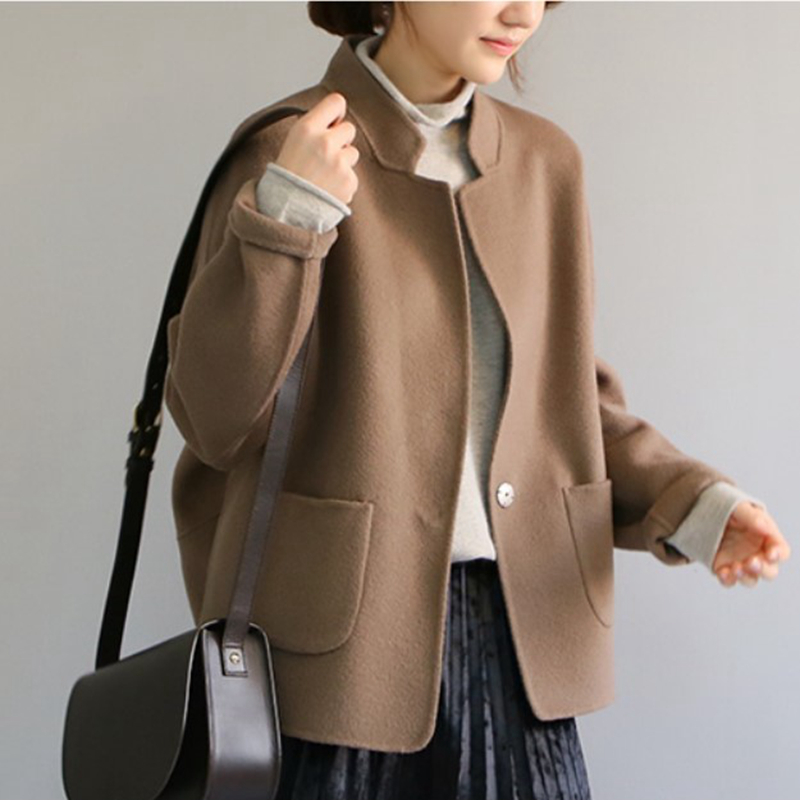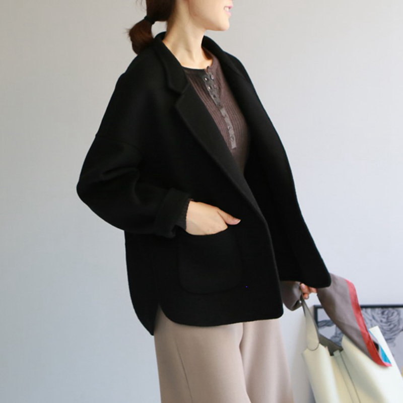 D01韩国女装双面羊绒宽松秋冬女士呢子外套大衣通勤显瘦handmade
