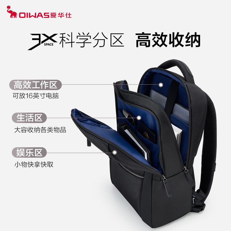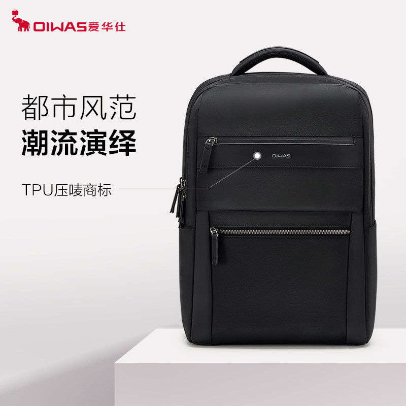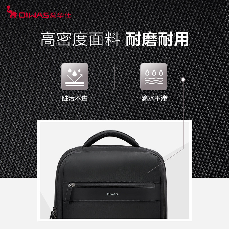 爱华仕都市风范男士双肩书包日常通勤电脑包商务背包旅行黑色背包