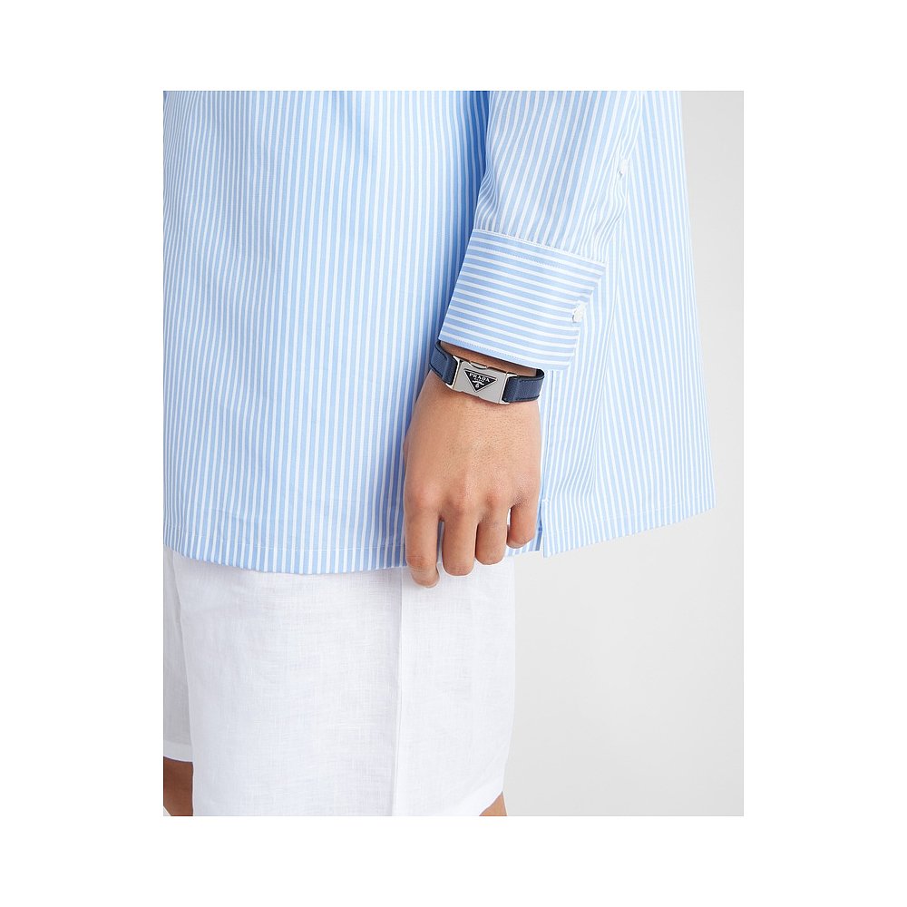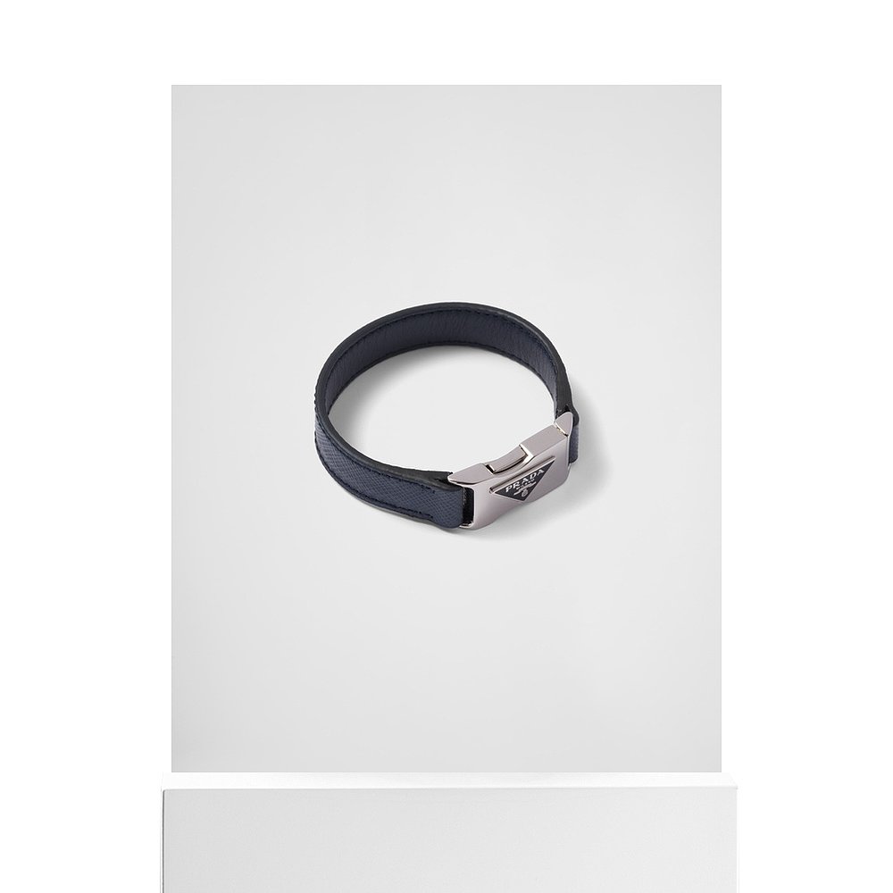 自营欧洲直邮Prada普拉达 Saffiano男士波罗的海蓝皮革金属三角标