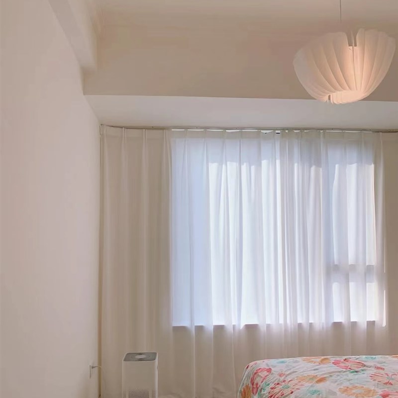 高品质白色透光不透人纱白色窗帘卧室客厅飘窗定制免打孔简约现代
