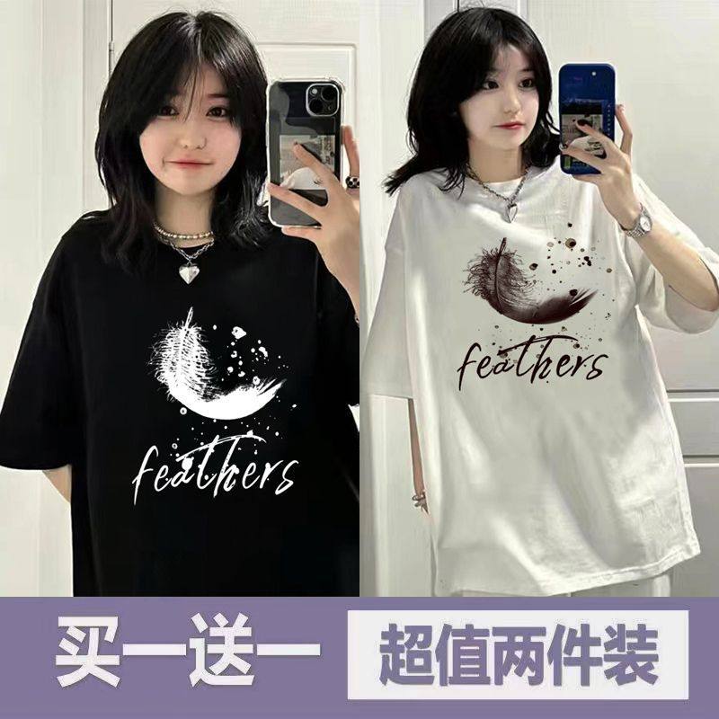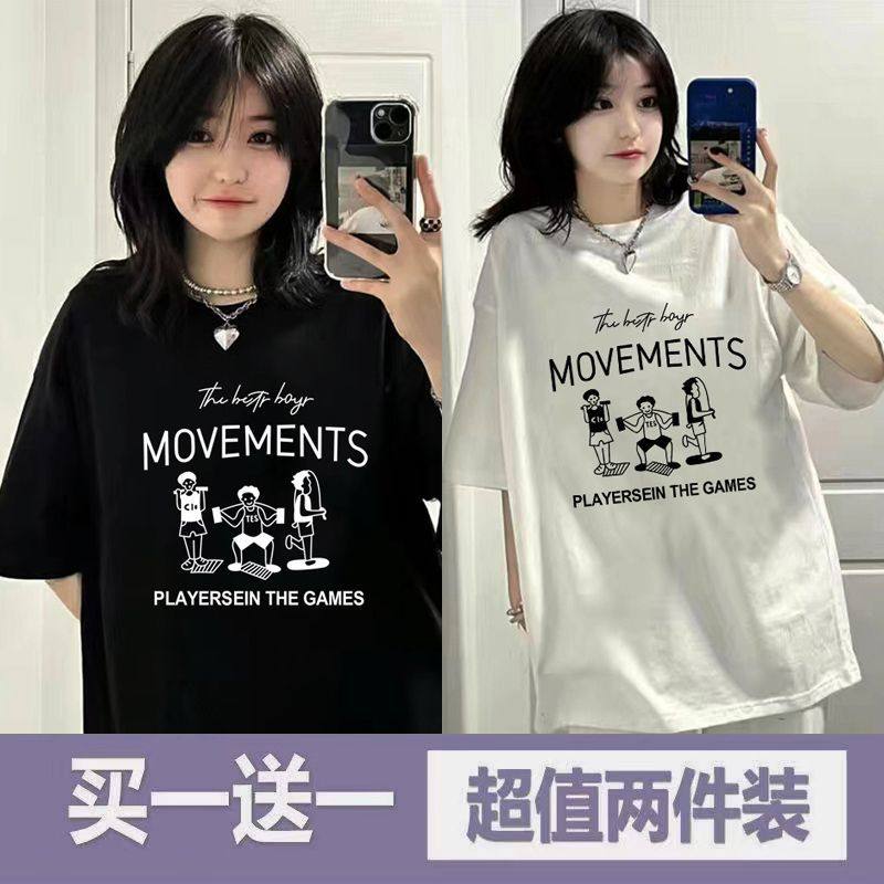 单/两件装黑白色夏季短袖t恤女学生宽松韩版百搭ins潮半袖上衣服